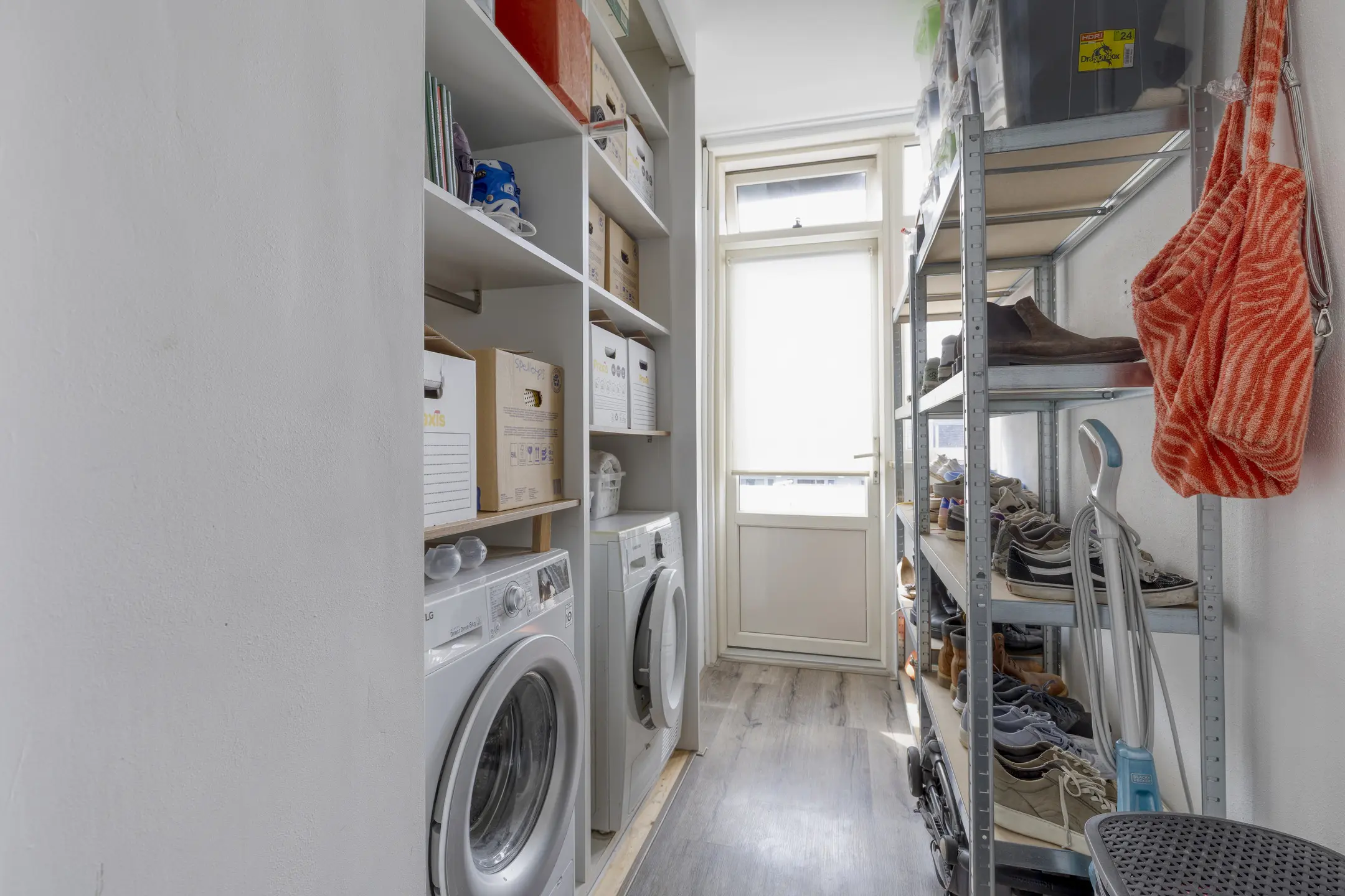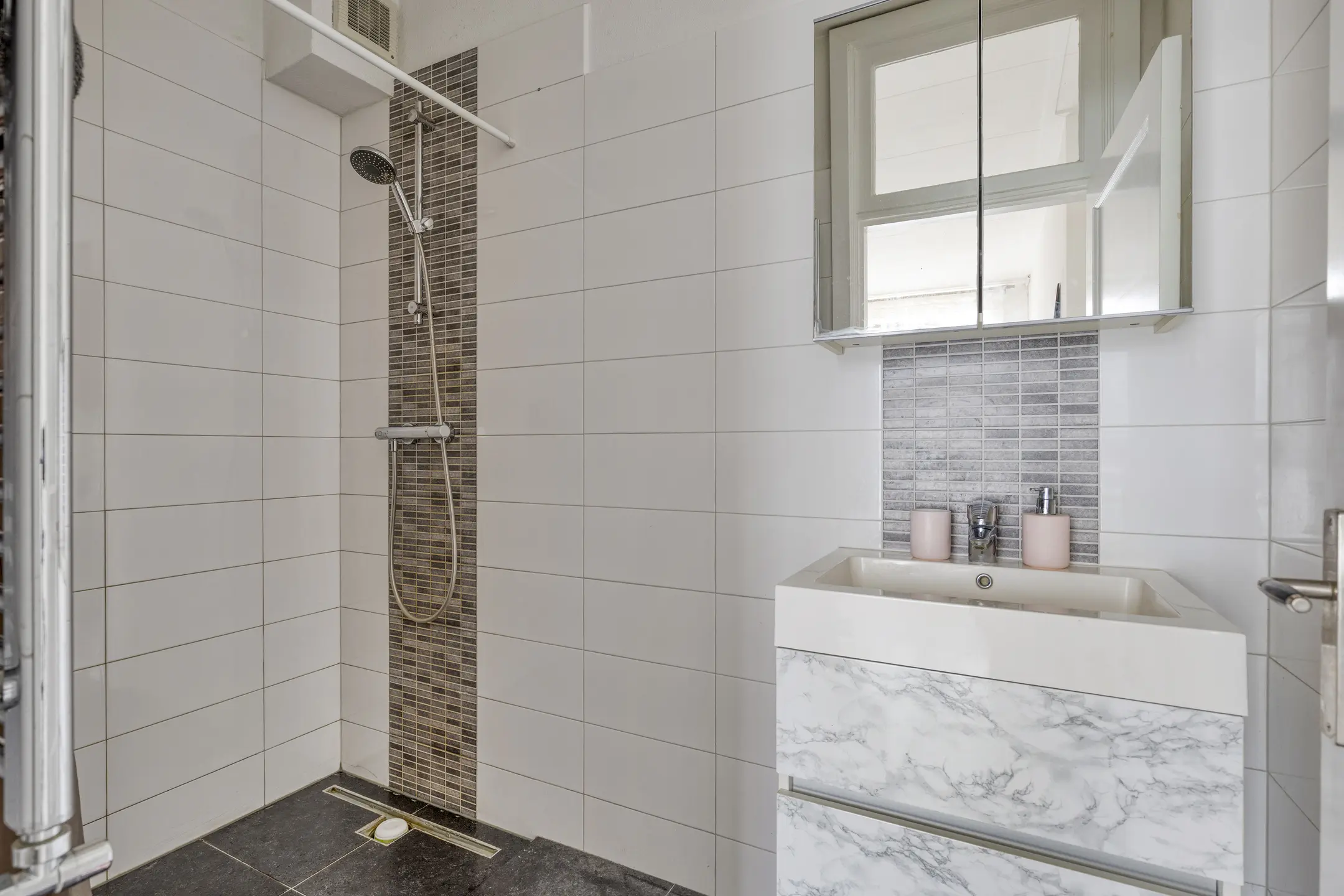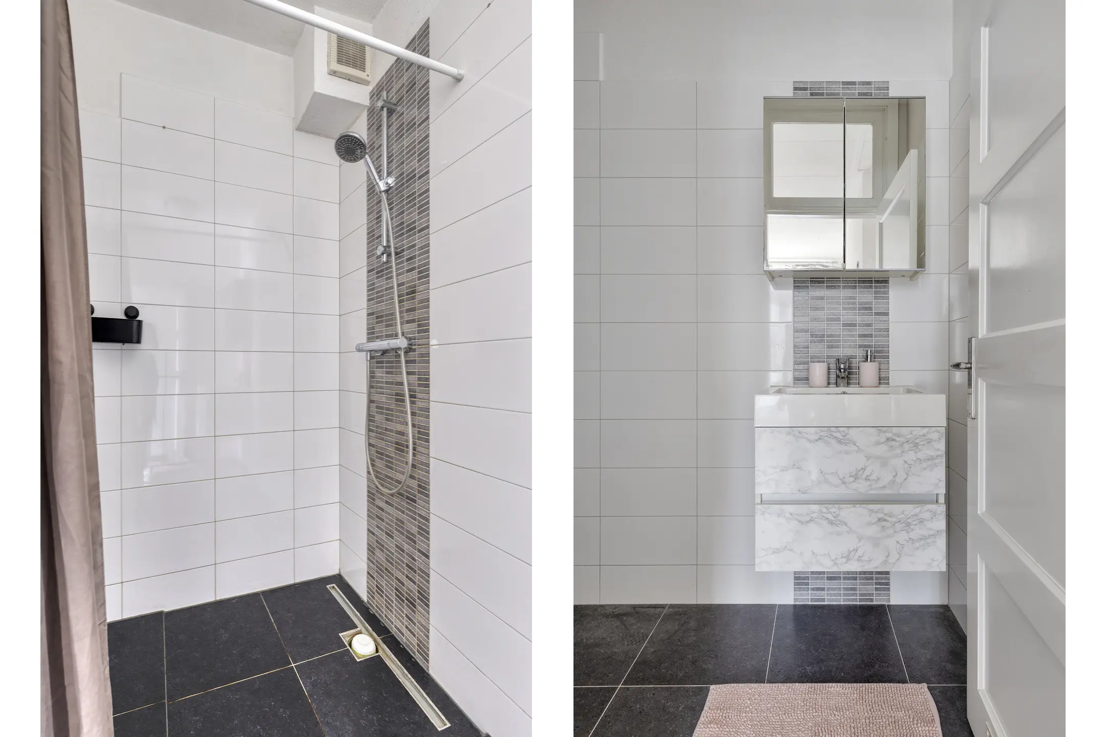 Aan de voorzijde van de eerste verdieping bevindt zich nog een slaapkamer die toegang geeft tot de tweede verdieping, welke in 2019 is gerealiseerd. Dankzij deze dakopbouw zijn er drie royale slaapkamers ontstaan van respectievelijk zestien, veertien en tien vierkante meter, alle keurig afgewerkt met een fraaie laminaatvloer. De overloop op deze verdieping biedt naast de toegang tot de kamers ook plaats aan de cv-ketel. Aan de voorzijde van de woning bevindt zich een moderne tweede badkamer, eveneens in 2019 gerealiseerd, half betegeld en voorzien van een wastafelmeubel, douche, tweede toilet en ligbad. Op deze verdieping vindt u bovendien een fraai dakterras aan de voorzijde, waar u tijdens de zomeravonden heerlijk kunt vertoeven.
