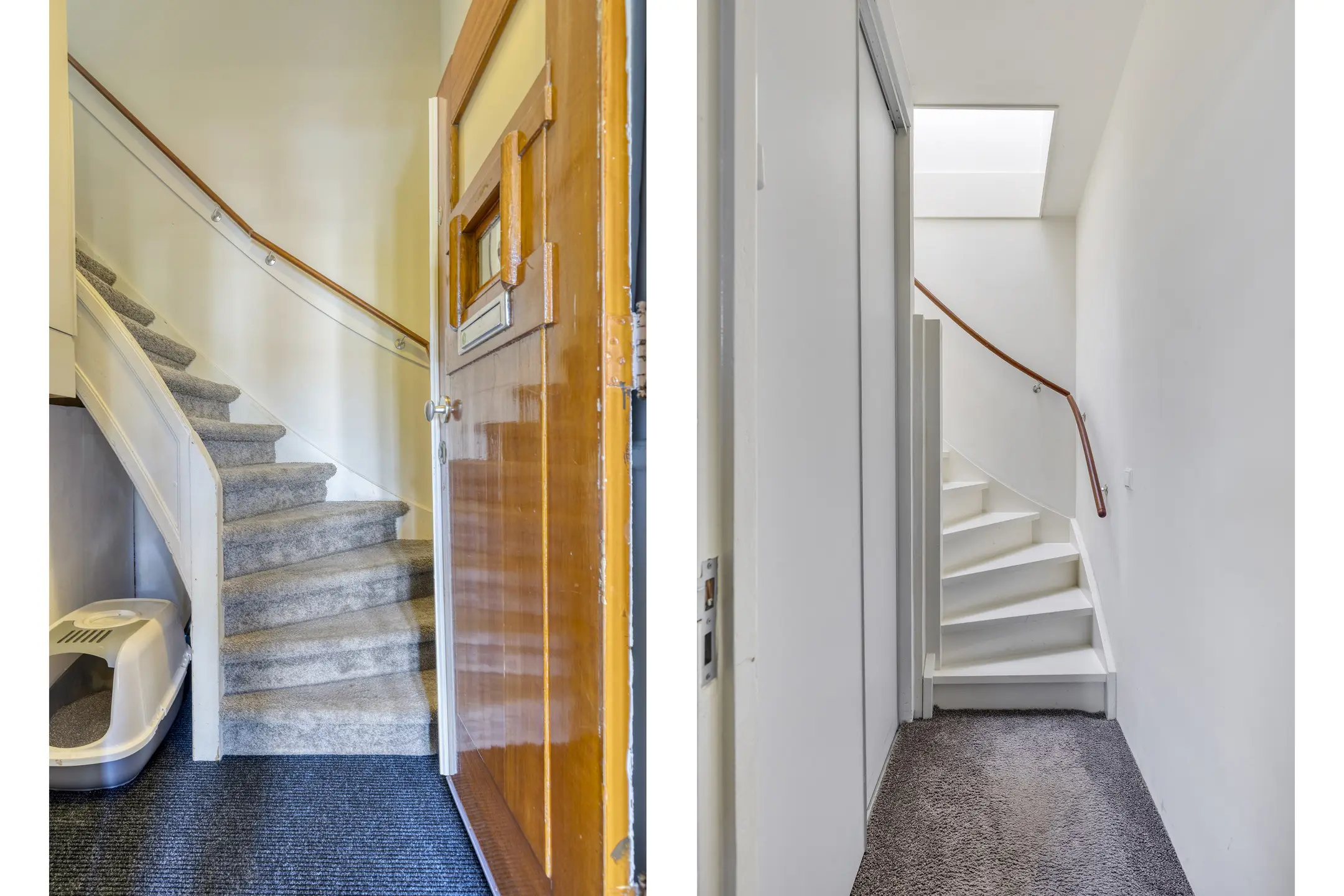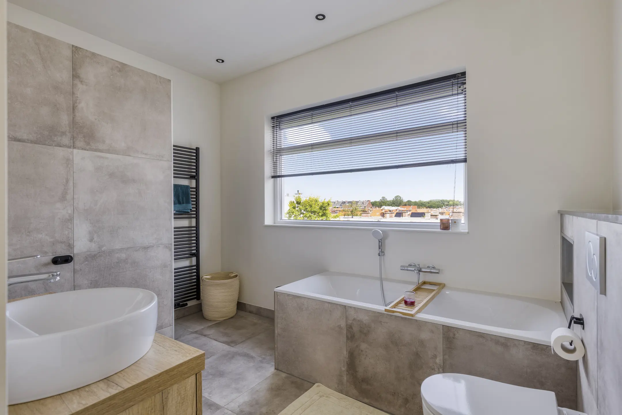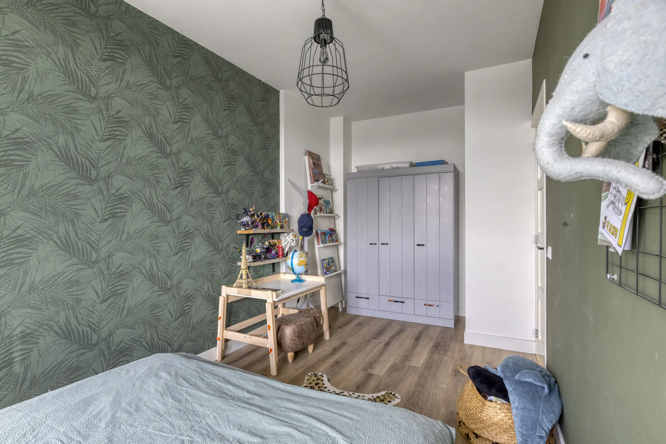 Aan de voorzijde van de eerste verdieping bevindt zich nog een slaapkamer die toegang geeft tot de tweede verdieping, welke in 2019 is gerealiseerd. Dankzij deze dakopbouw zijn er drie royale slaapkamers ontstaan van respectievelijk zestien, veertien en tien vierkante meter, alle keurig afgewerkt met een fraaie laminaatvloer. De overloop op deze verdieping biedt naast de toegang tot de kamers ook plaats aan de cv-ketel. Aan de voorzijde van de woning bevindt zich een moderne tweede badkamer, eveneens in 2019 gerealiseerd, half betegeld en voorzien van een wastafelmeubel, douche, tweede toilet en ligbad. Op deze verdieping vindt u bovendien een fraai dakterras aan de voorzijde, waar u tijdens de zomeravonden heerlijk kunt vertoeven.