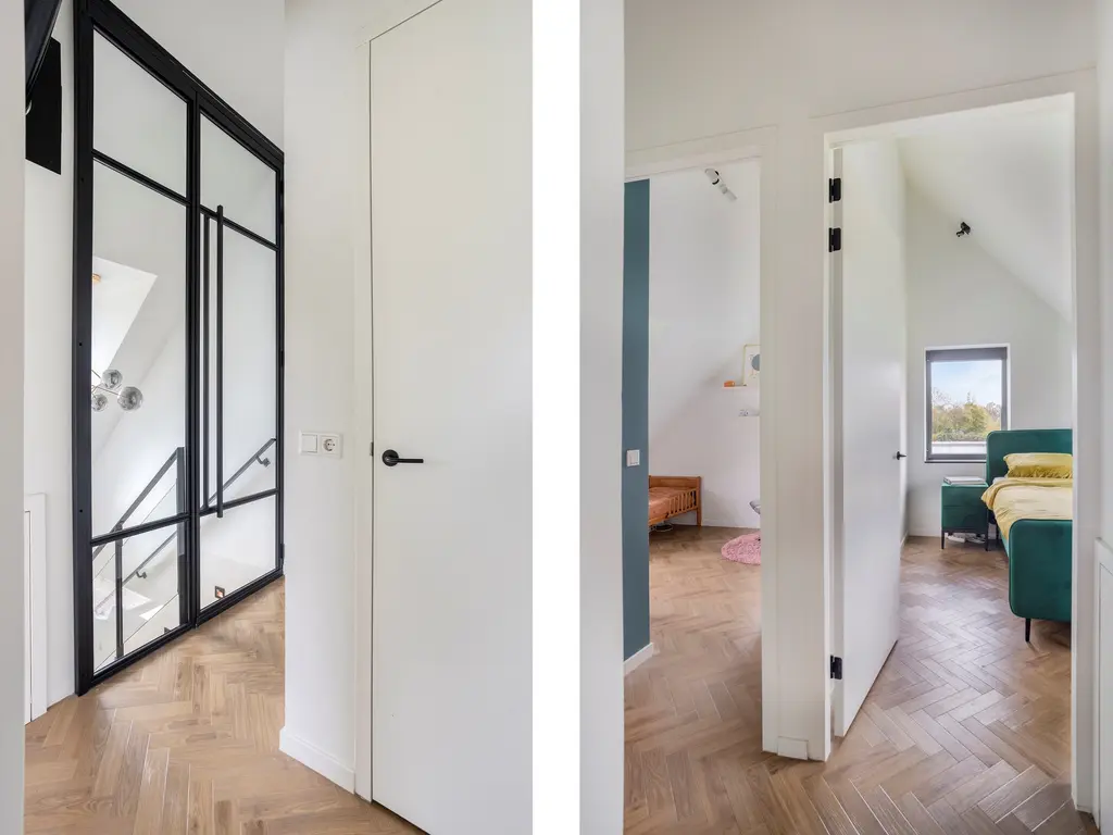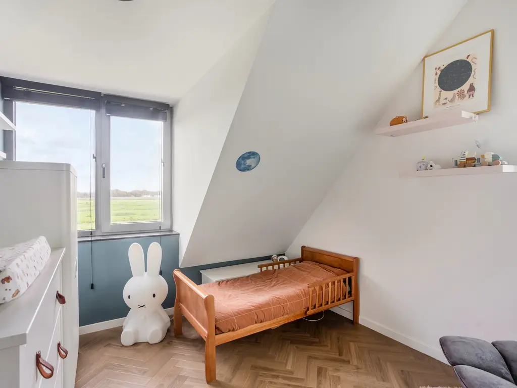 Op de eerste verdieping bevinden zich twee ruime slaapkamers, beide voorzien van dakkapellen aan de voor- en achterzijde, waardoor de kamers veel licht en ruimte bieden. Vanuit elke kamer is er een prachtig uitzicht over het water, de weilanden en het groen rondom de woning, wat bijdraagt aan een gevoel van rust en verbondenheid met de natuur.. De moderne badkamer is voorzien van een inloopdouche, wastafelmeubel en toilet terwijl op de overloop een separate wasruimte aanwezig is.