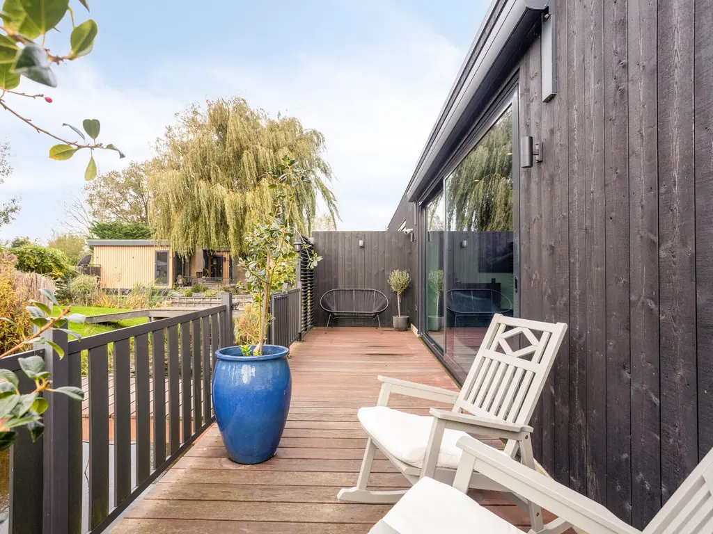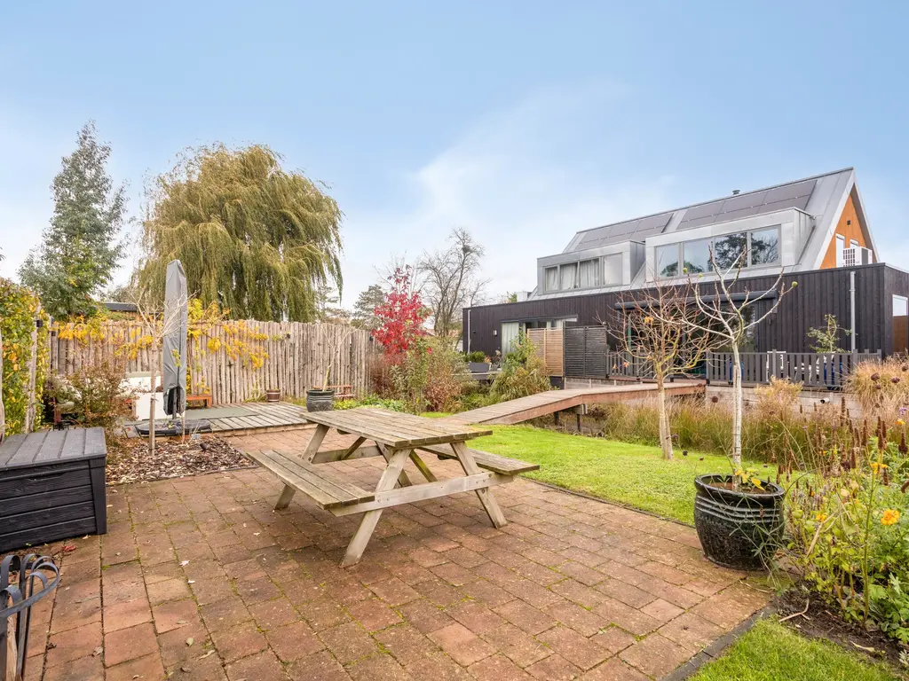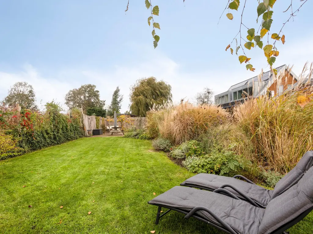 De woning ligt op een idyllische plek waar natuur en comfort elkaar ontmoeten. De fraai aangelegde, professioneel ontworpen tuin op het zuidwesten biedt een weids uitzicht over het water en de omliggende weilanden. De tuin is voorzien van een natuurlijke oever waar (water)vogels zich graag laten zien, en een charmante pluktuin waar eigen bloemen of kruiden kunnen worden gekweekt. Regelmatige bezoekers zijn ijsvogels, fazanten en zelfs vossen, wat bijdraagt aan de bijzondere sfeer van deze locatie. Het grote hardhouten terras vormt een heerlijke plek om te ontspannen of te dineren aan het water. Dankzij het extra aangekochte perceel is de tuin uitzonderlijk royaal en biedt deze volop mogelijkheden voor tuinliefhebbers en buitenleven. De ruimte en ligging maken het mogelijk om meerdere zitjes te creëren, zodat op elk moment van de dag van de zon, de rust of het uitzicht genoten kan worden.