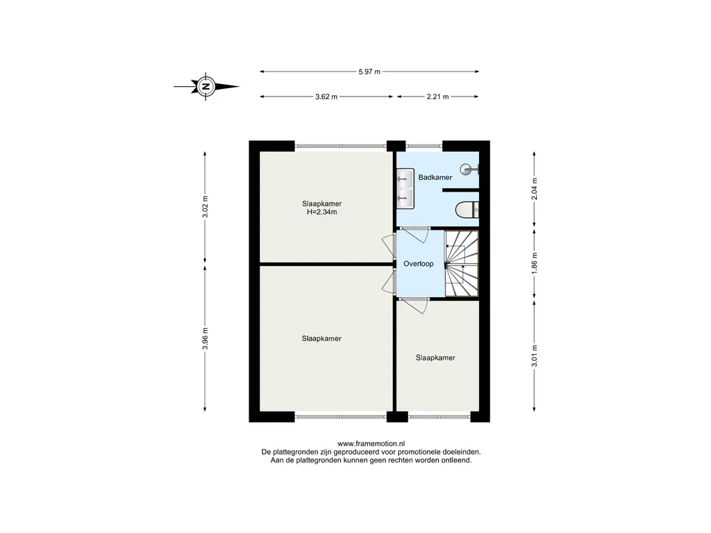 De overloop geeft toegang tot drie slaapkamers — twee aan de achterzijde en één aan de voorzijde — elk voorzien van strak afgewerkte convectorradiatoren en een UTP-aansluiting. De ouderslaapkamer heeft fraai behang; de overige kamers zijn voorzien van glad stucwerk op de wanden. De vloer op deze verdieping is afgewerkt met een laminaatvloer.