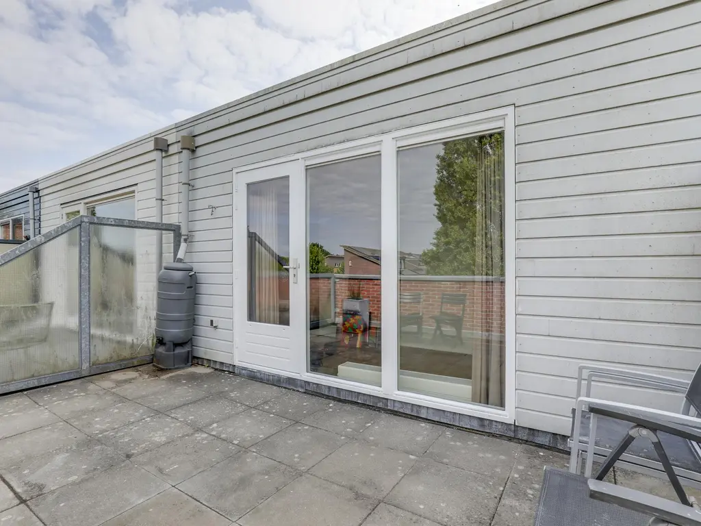 De woning beschikt over zowel een voor- als achtertuin, samen goed voor ca. 68 m² buitenruimte. De achtertuin (ca. 58 m²) is gelegen op het oosten en beschikt over een handige achterom. Hier geniet je van de ochtend- en vroege middagzon. Tevens is er een houten berging aanwezig voor extra opslagruimte.