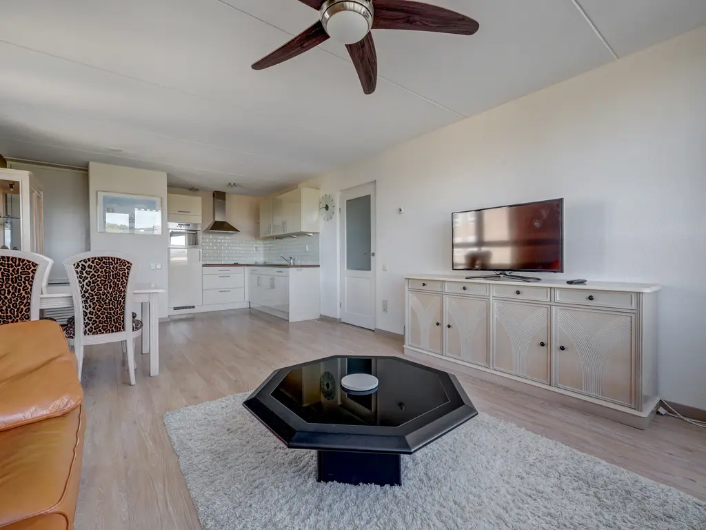 De woonkamer biedt ruimte voor een grote zithoek waar je heerlijk kunt ontspannen. Daarnaast is er voldoende plek voor een royale eethoek waar je met gemak een tafel voor 6 tot 8 personen kwijt kunt.