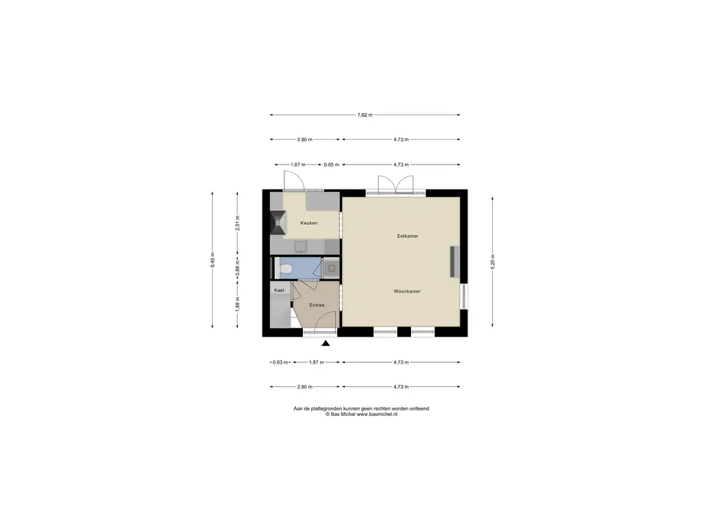 Via het trapje vanaf de dijk bereikt u de entree van de woning. In de hal vindt u de trap naar de eerste verdieping, een praktische trapkast en de toiletruimte. Het toilet is uitgevoerd met een hangend toilet en een afgesloten kast met de drogeropstelling en extra bergruimte. De hal is voorzien van plavuizen, net als de keuken.