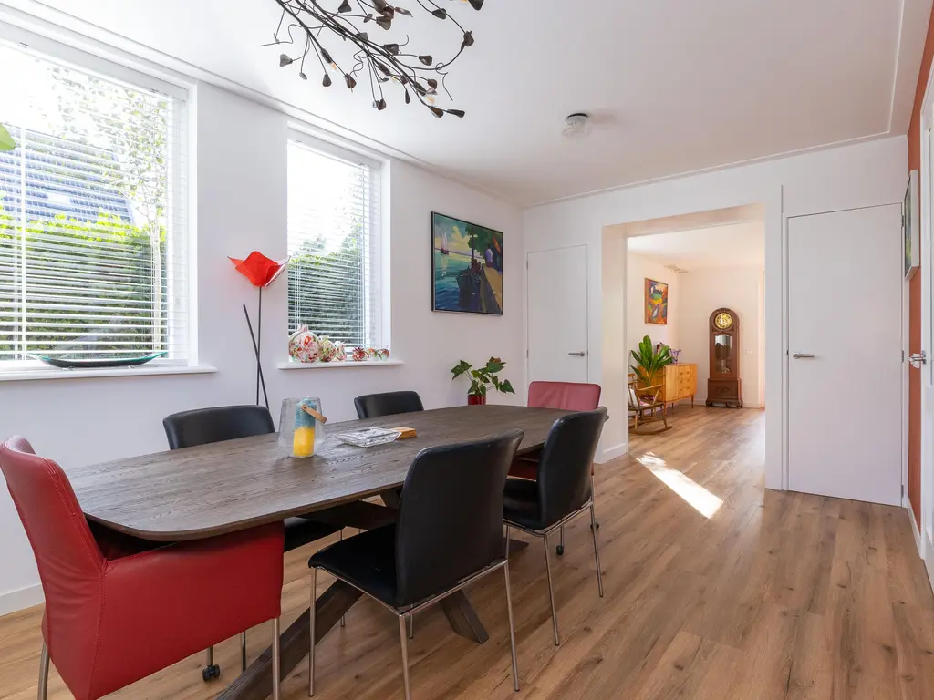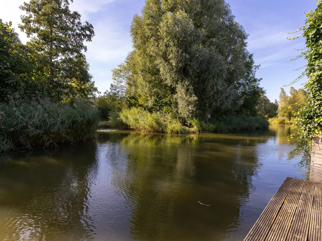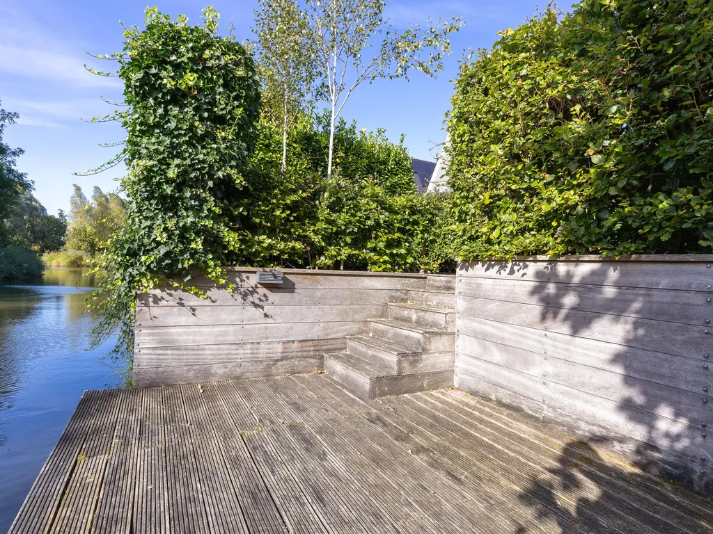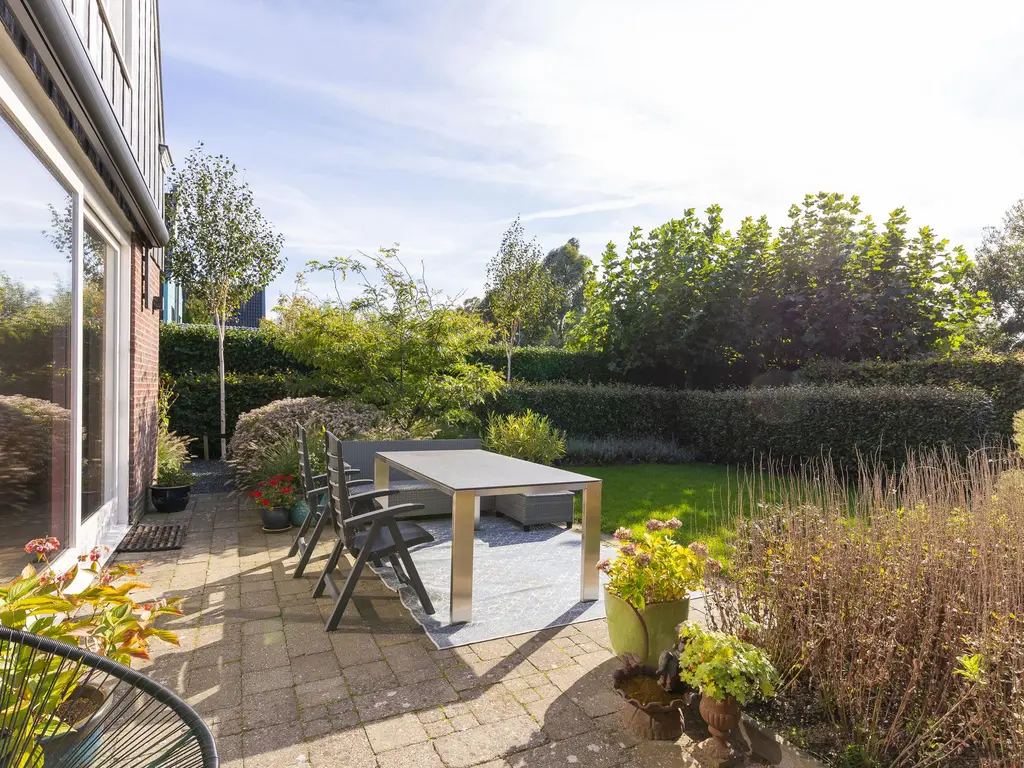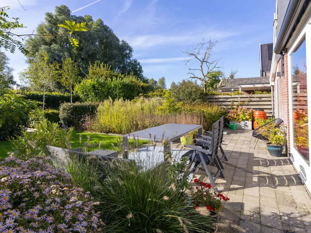 Via de zij-entree komt u binnen in de hal, met toegang tot een modern toilet, meterkast, trapopgang en toegang tot de garage. De garage is verdeeld in een gedeelte berging een bijkeuken met aansluitingen voor de wasmachine en de droger. Aan de voorzijde de woonkeuken met keukenblok in U-vormige opstelling met vaatwasser, koelkast, vriezer, oven, inductie kookplaat, afzuigkap en een Quooker, aansluitend een mooie ruimte voor een grote eettafel, ruime en lichte woonkamer met grote schuifpui naar de achtertuin. De achtertuin is gelegen op zonnige zuid-westen zeer graai aangelegd met diverse terrassen en steiger aan het water met uitzicht over het park. De begane grond is voorzien van een PVC vloer met een vloerverwarming.