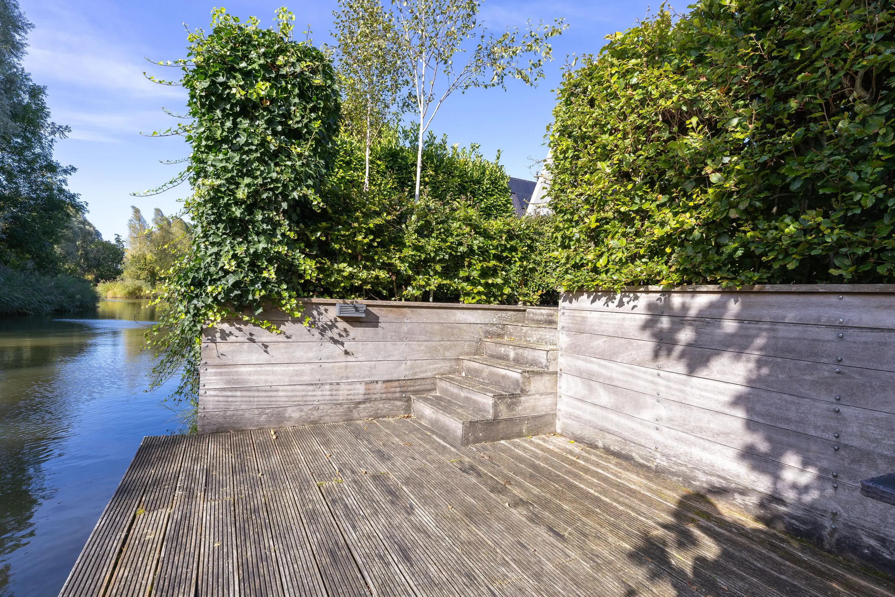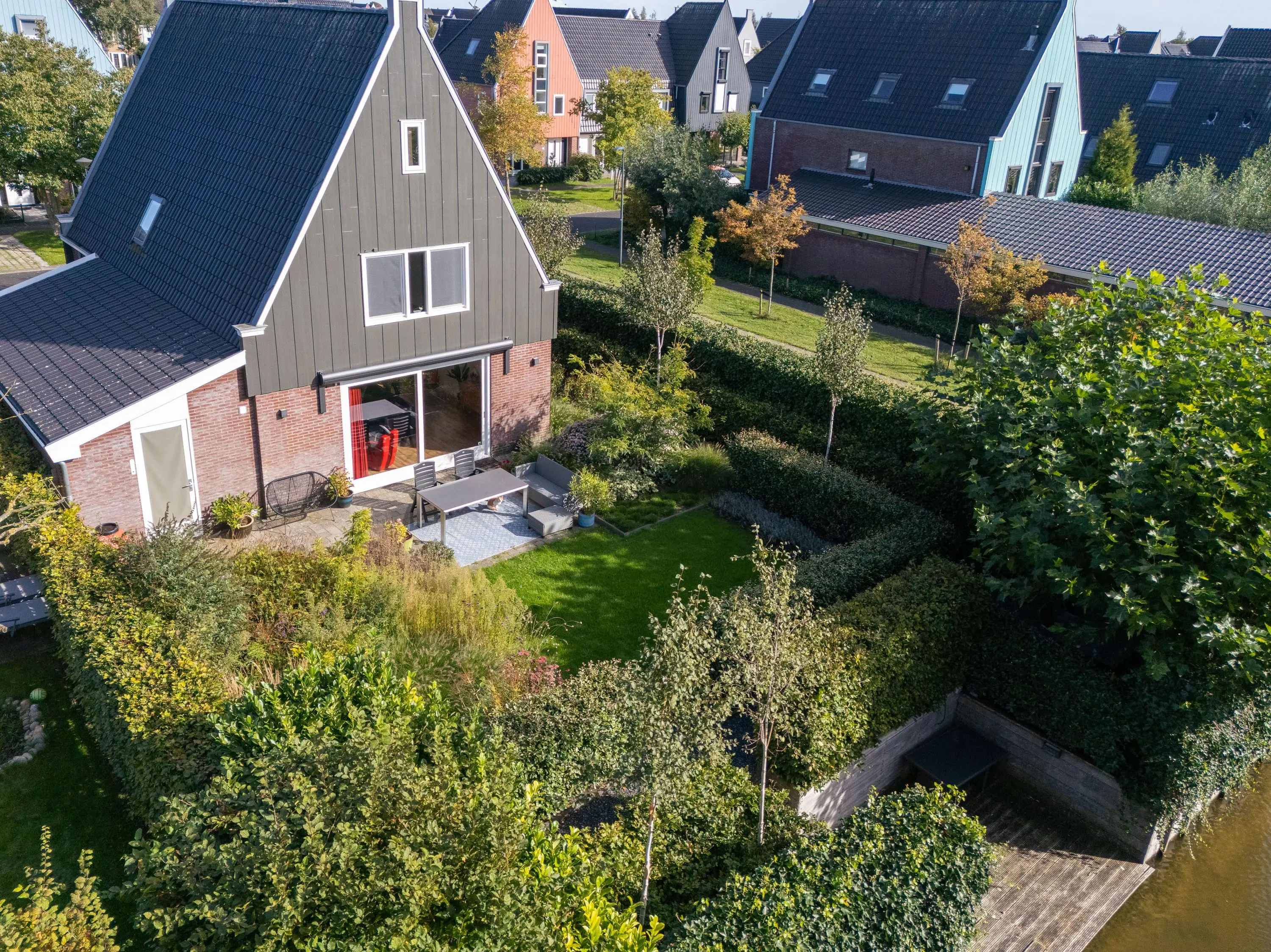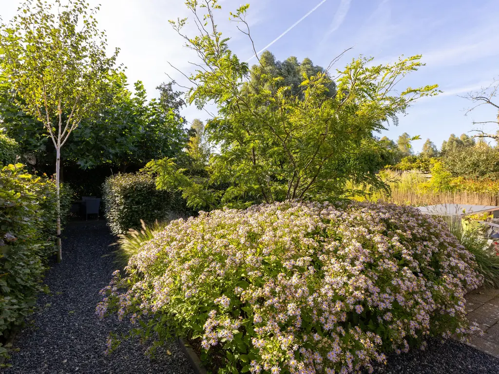 Via de zij-entree komt u binnen in de hal, met toegang tot een modern toilet, meterkast, trapopgang en toegang tot de garage. De garage is verdeeld in een gedeelte berging een bijkeuken met aansluitingen voor de wasmachine en de droger. Aan de voorzijde de woonkeuken met keukenblok in U-vormige opstelling met vaatwasser, koelkast, vriezer, oven, inductie kookplaat, afzuigkap en een Quooker, aansluitend een mooie ruimte voor een grote eettafel, ruime en lichte woonkamer met grote schuifpui naar de achtertuin. De achtertuin is gelegen op zonnige zuid-westen zeer graai aangelegd met diverse terrassen en steiger aan het water met uitzicht over het park. De begane grond is voorzien van een PVC vloer met een vloerverwarming.
