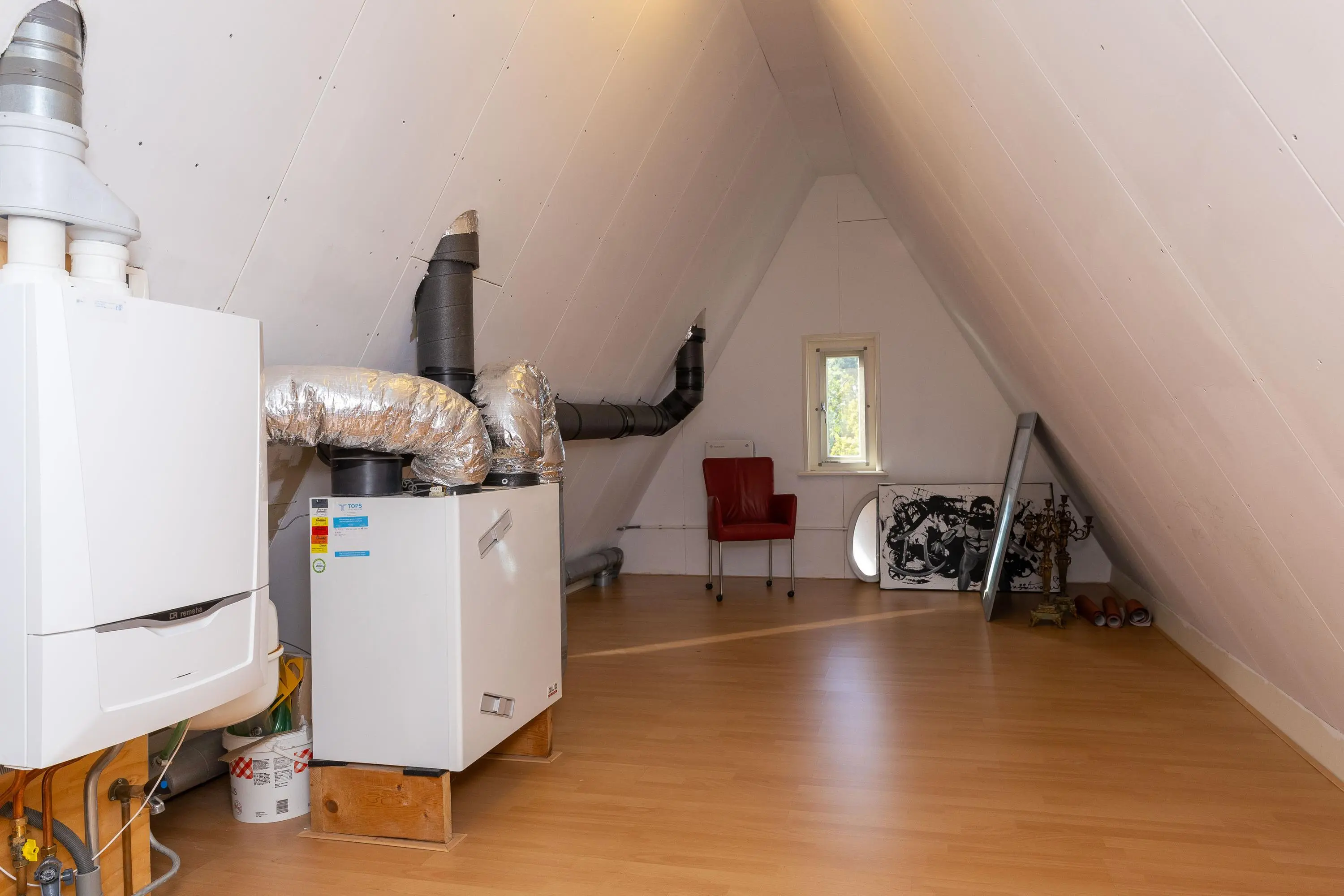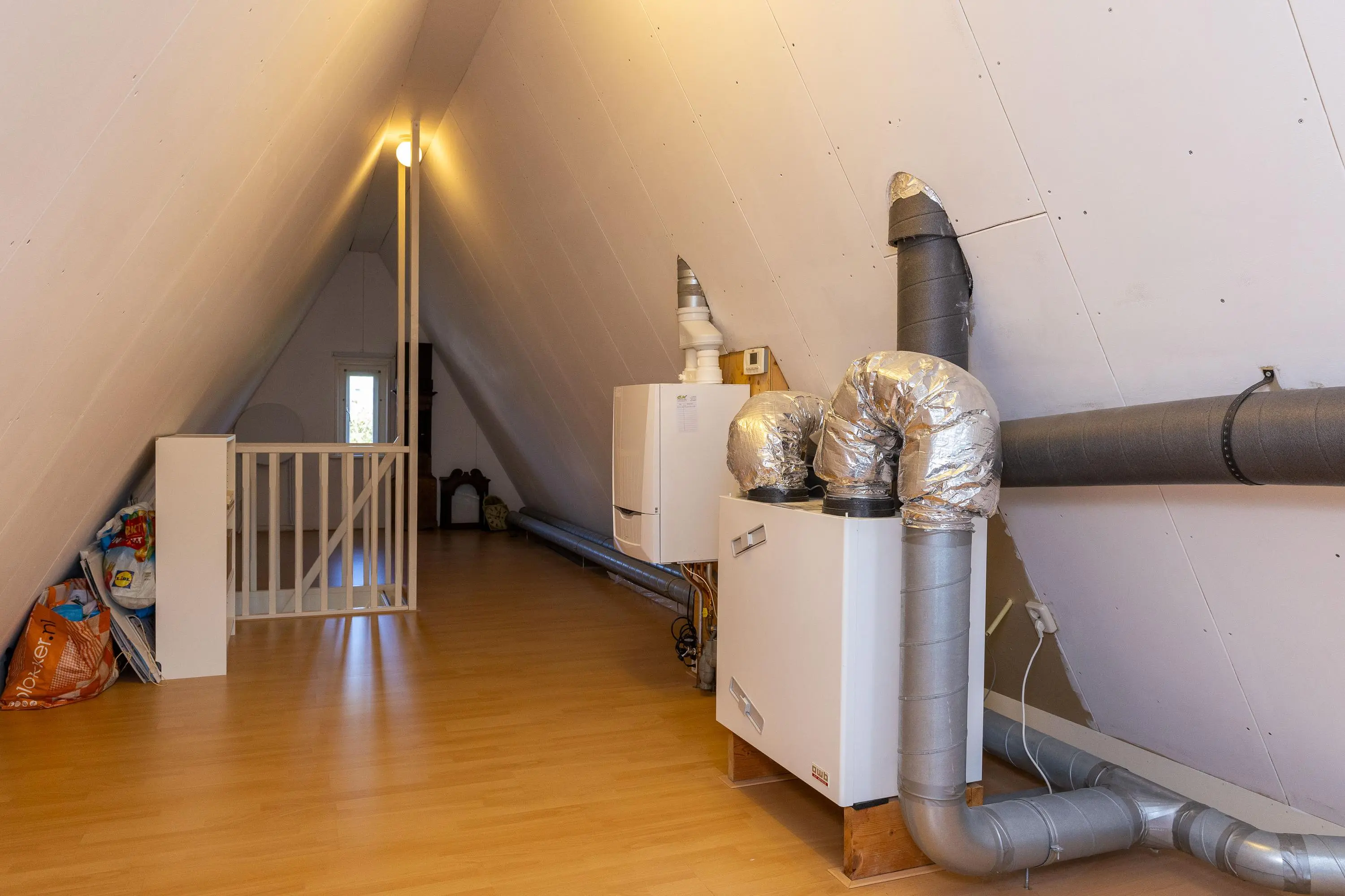 Te bereiken via een vaste trap. ruime zolderverdieping over de volledige lengte van de woning met opstelling van de C.V. ketel (Remeha, 2021) en opstelling van de balansventilatie. U treft op deze verdieping een volledige open ruimte waar de mogelijkheid is om een tweetal kamers te realiseren.