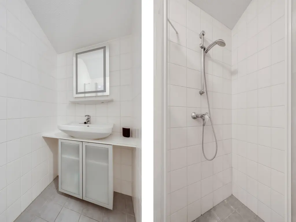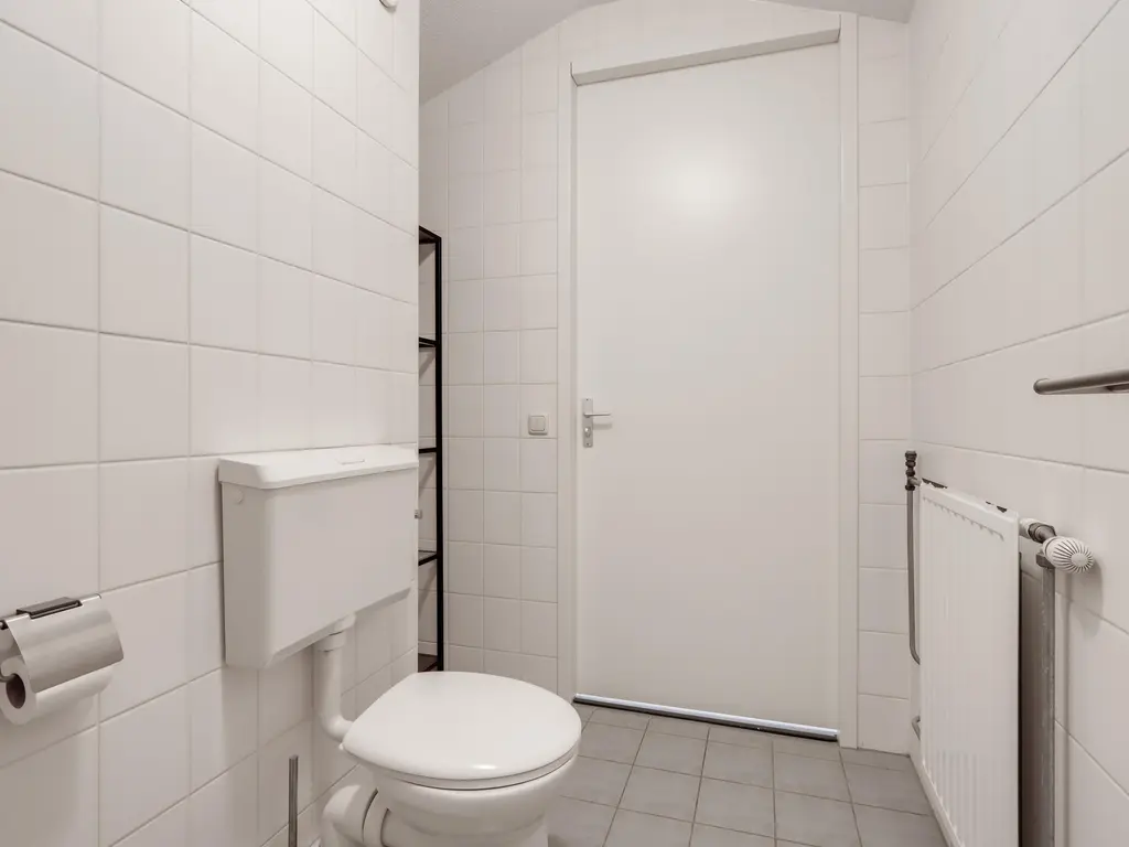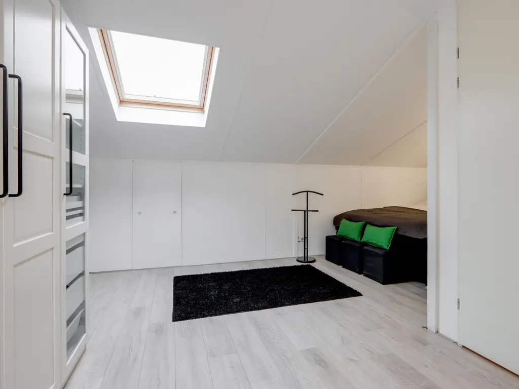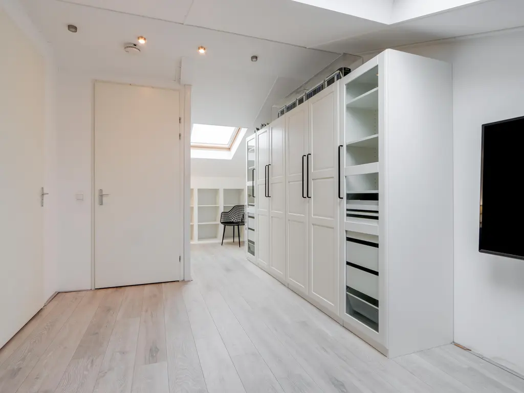 Op deze verdieping bevinden zich de ruime slaapkamer en de badkamer. De badkamer is voorzien van een toilet, wastafel met spiegel en een douchecabine. De slaapkamer beschikt over een extra ruimte die ideaal is voor extra opbergruimte, een make-uptafel of een studeer of werkplek. Daarnaast is er onder het schuine dak een verrassend ruime berging aanwezig.