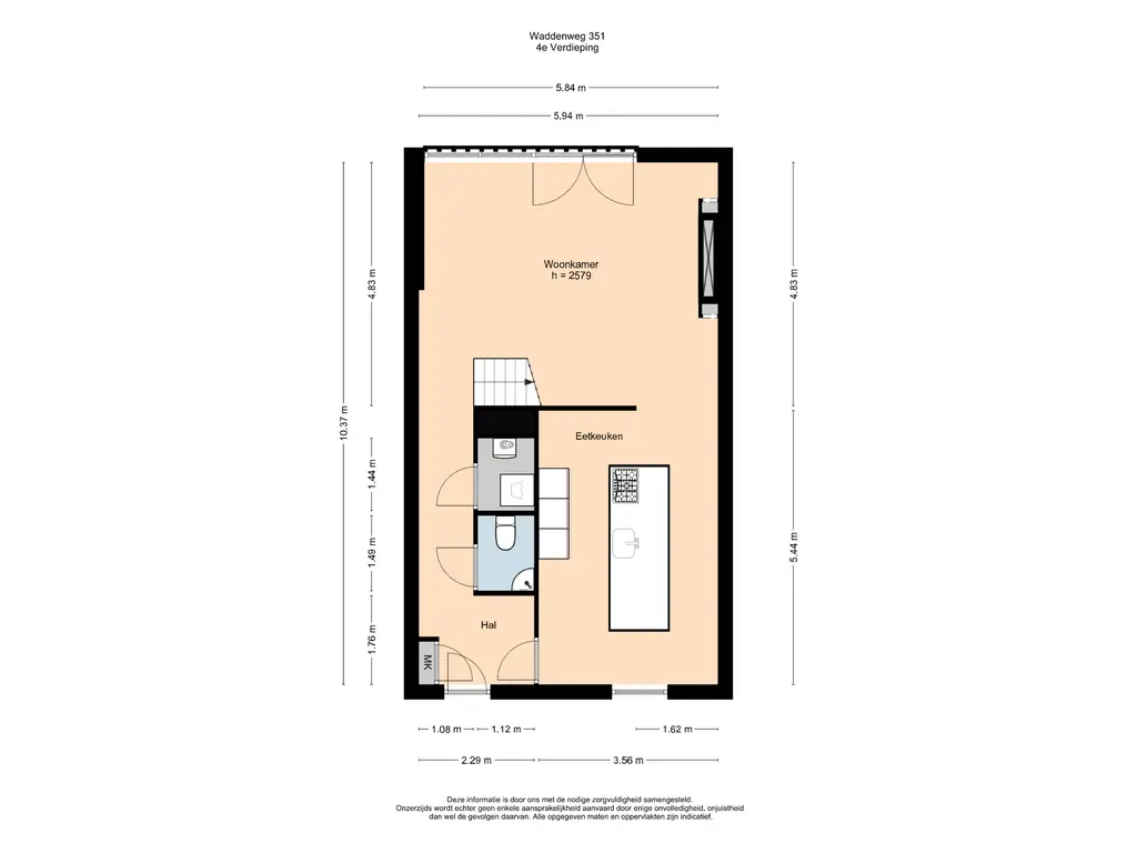 - Maisonnette appartement, gelegen op de vierde tevens bovenste verdieping;
