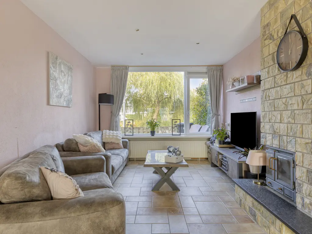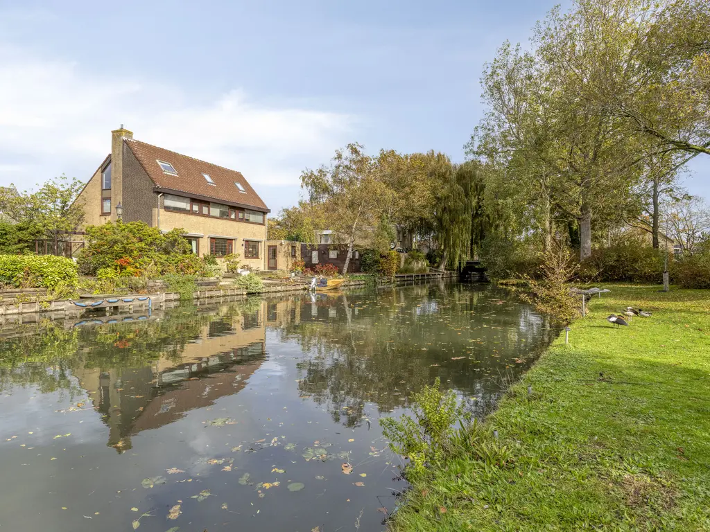 Aan de voorzijde van de woning ligt een verzorgde voortuin waar u in alle rust kunt genieten van het uitzicht op het water. Via de voordeur betreedt u de woning en komt u in de ruime hal met de trapopgang naar de eerste verdieping en een toilet. Vanuit de hal bereikt u de woonkamer, die over de gehele diepte van de woning loopt en dankzij de grote raampartijen aan zowel de voor- als achterzijde heerlijk licht is. De woonkamer is afgewerkt met een fraaie plavuizen vloer met vloerverwarming en beschikt over een sfeervolle open haard.
