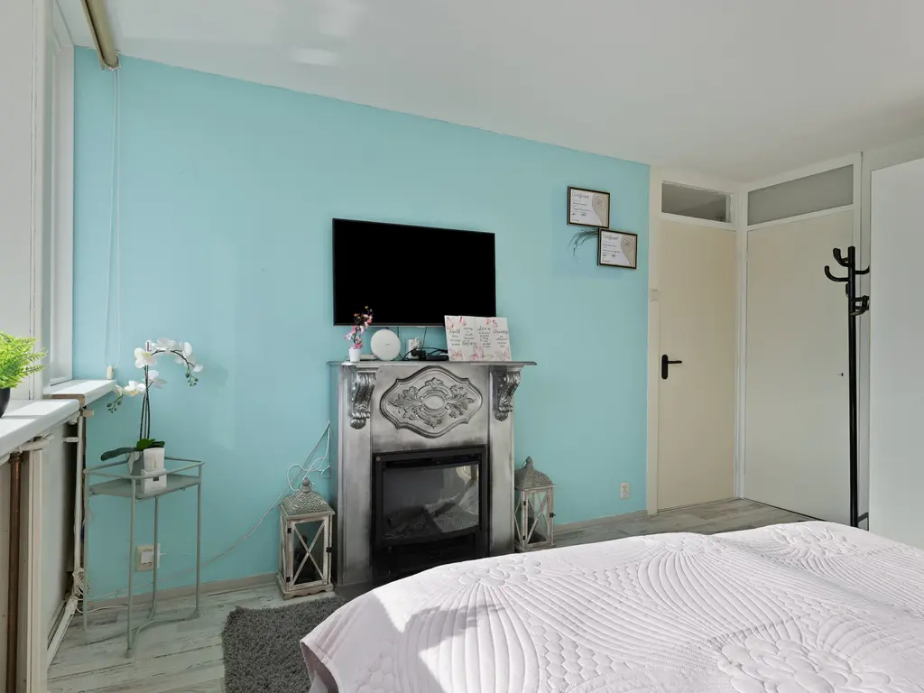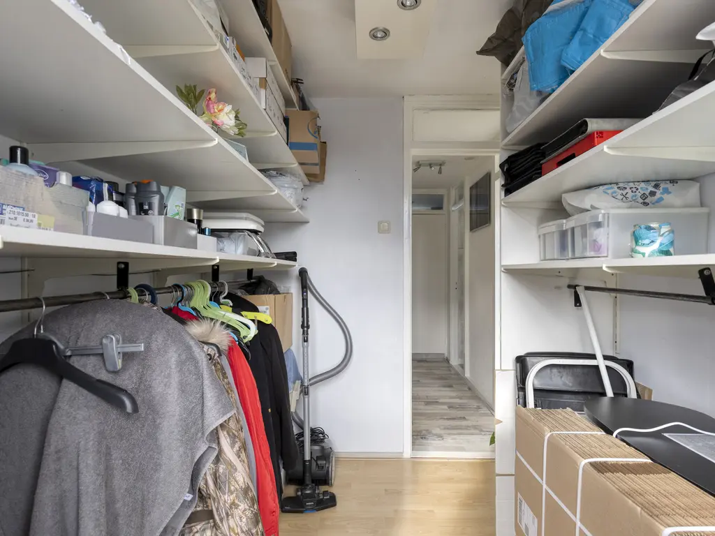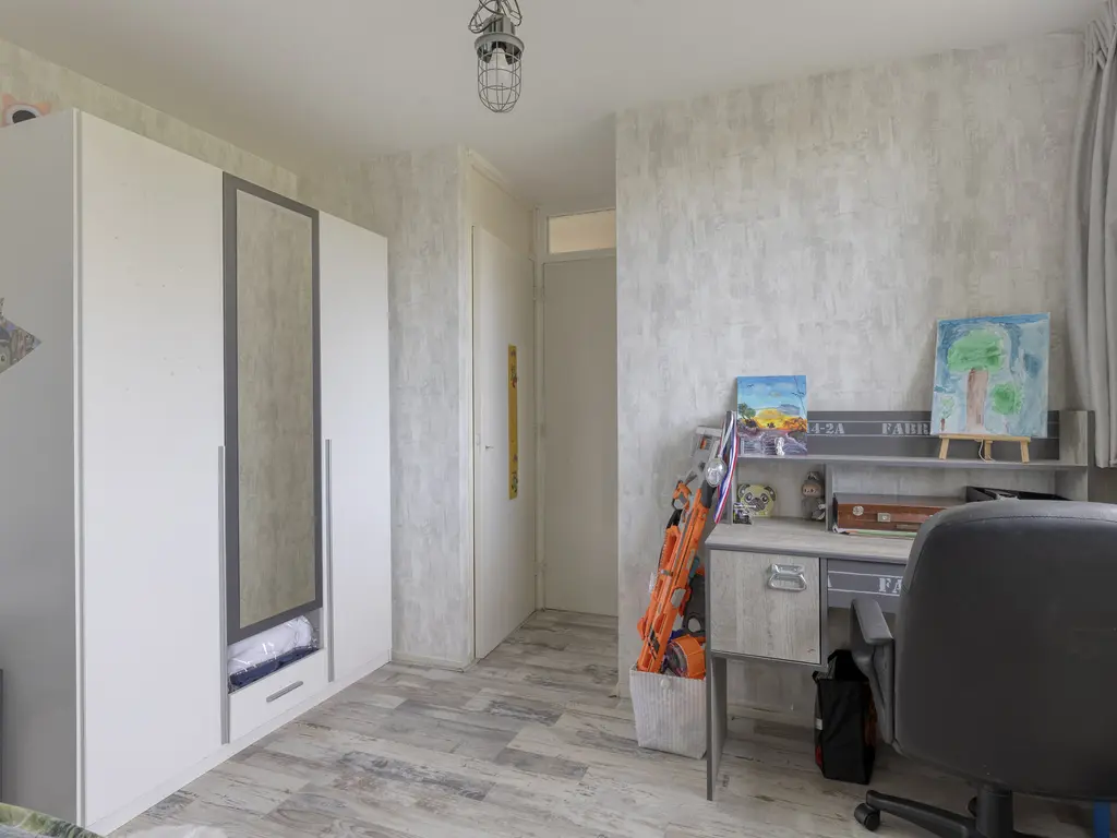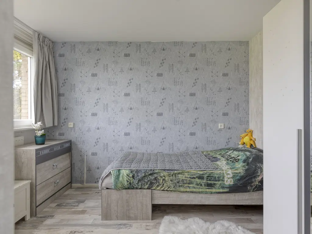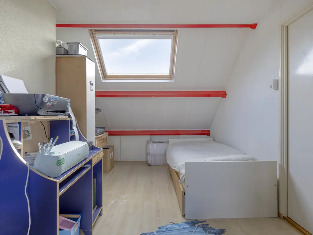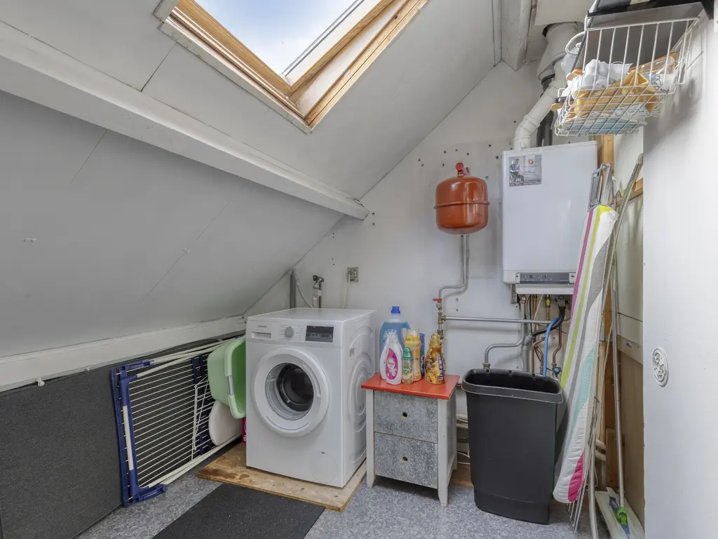 De trapopgang loopt door naar de tweede verdieping. Hier bevindt zich een praktische wasruimte met de opstelplaats van de cv-ketel (uit 2018) en daarnaast een ruime kamer van ongeveer vijftien vierkante meter. Deze ruimte kan uitstekend dienen als extra slaapkamer, hobbykamer of kantoor.