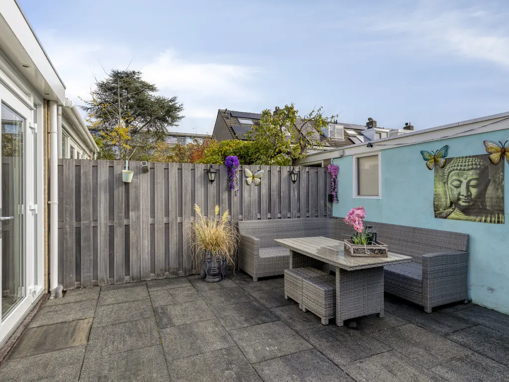 De achtertuin is gelegen op het zuidoosten, waardoor u vrijwel de hele dag van de zon kunt genieten. De tuin is verzorgd aangelegd en beschikt over een ruime berging over de volledige breedte van het perceel, met daarin tevens een praktische achterom.
