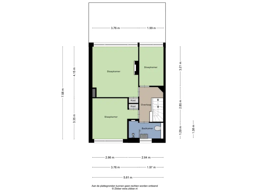 Via de trapopgang bereikt u de eerste verdieping, waar drie slaapkamers zijn gesitueerd van respectievelijk zes, negen en vijftien vierkante meter. Alle kamers zijn voorzien van een nette laminaatvloer. De badkamer op deze verdieping is in 2017 vernieuwd en volledig betegeld. Deze beschikt over een douche, een wastafelmeubel en een tweede toilet.