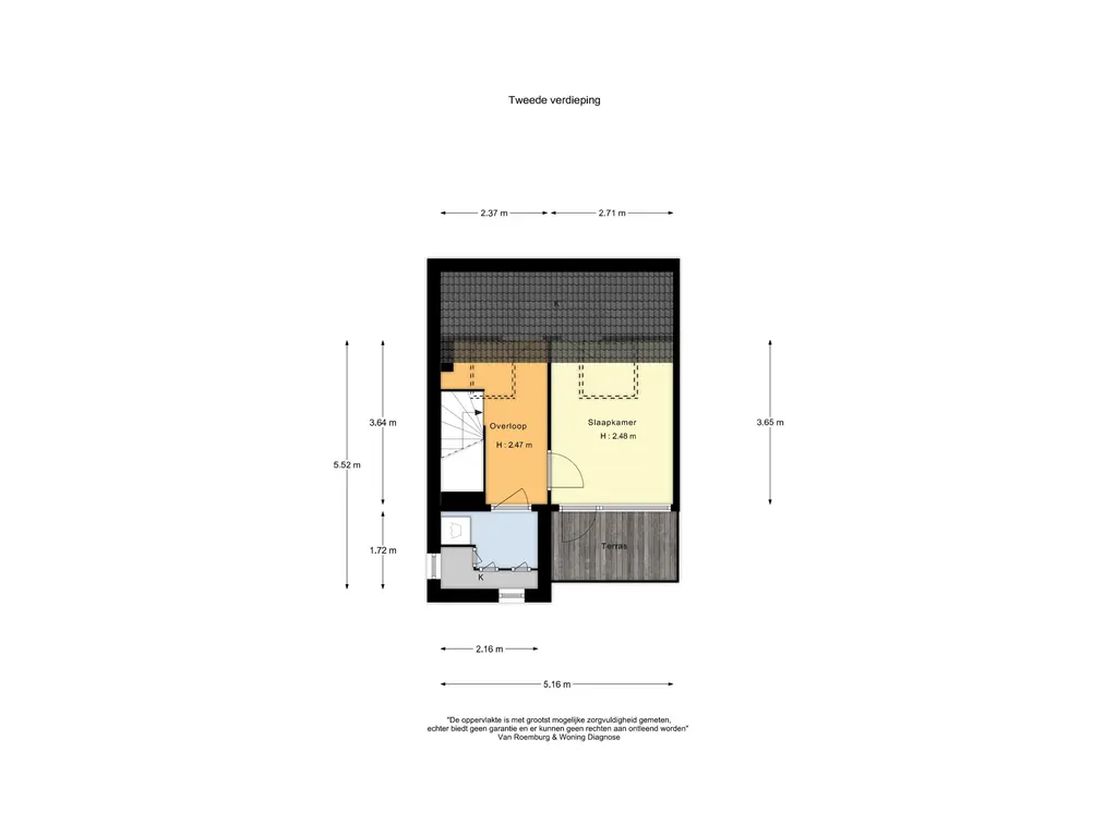 Royale overloop met toegang tot de derde slaapkamer. Deze is voorzien van een groot dakraam, wat zorgt voor veel lichtinval. Vanuit deze kamer is er toegang tot het balkon (zuidwesten). Ruime waskamer met de opstelling voor wasmachine en droger. Door de royale afmetingen is deze ruimte in de toekomst eenvoudig om te zetten naar een tweede badkamer.