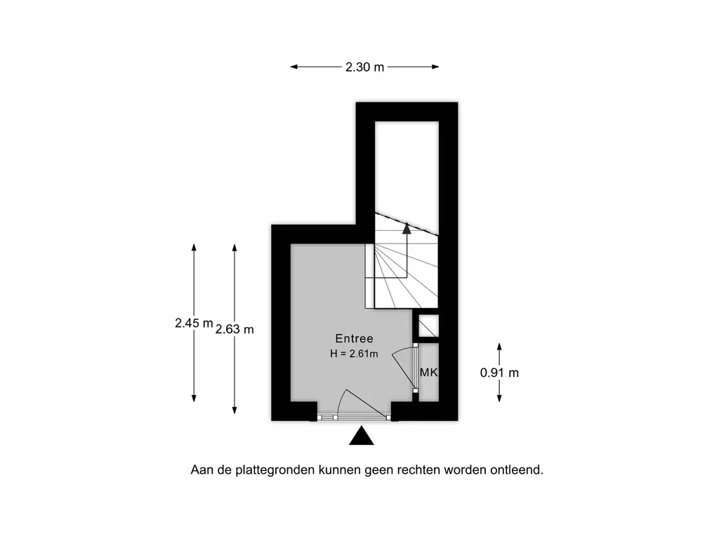 Private entrance with hallway, meter cupboard, and staircase leading to the living level.