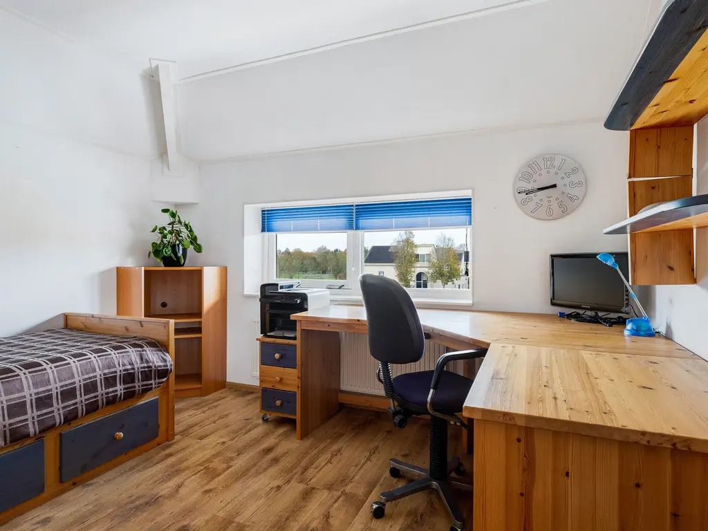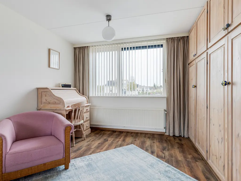 De hoofdslaapkamer beschikt over een eigen balkon – een fijne plek om de dag rustig te beginnen of af te sluiten. De tweede kamer, momenteel ingericht als werkkamer, biedt toegang tot het royale L-vormige dakterras, waar u de zon op elk moment van de dag kunt opzoeken.