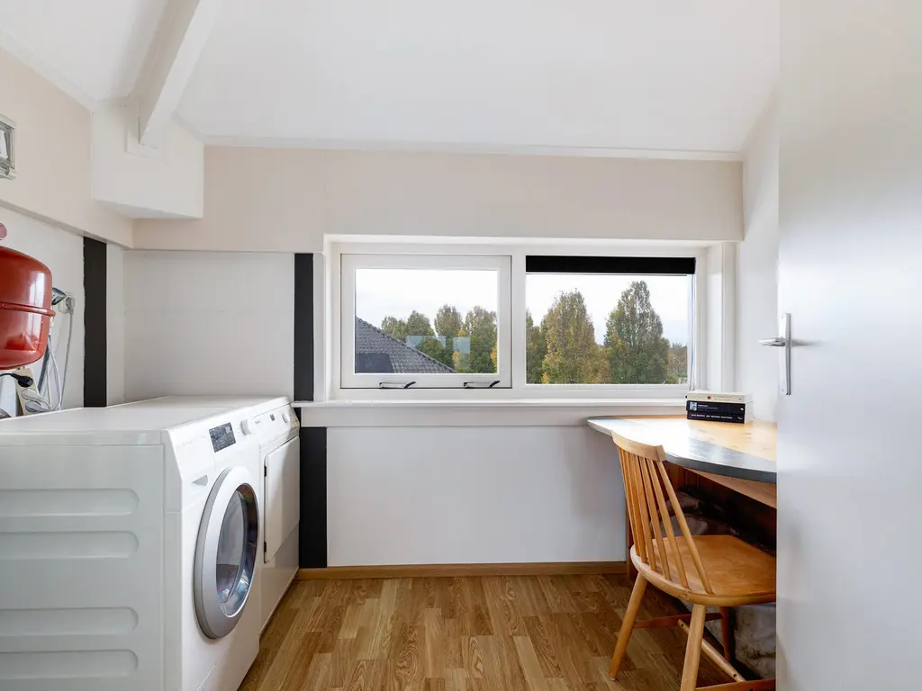 De tweede verdieping biedt een overloop met een aparte wasruimte, voorzien van aansluiting voor wasmachine, droger en de opstelling van de CV-installatie. Daarnaast zijn er nog drie slaapkamers, die uitstekend kunnen dienen als kinderkamers, logeerkamers of thuiswerkplekken.