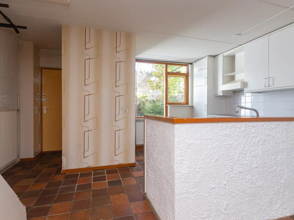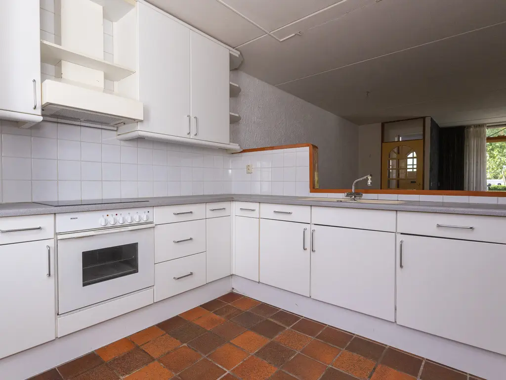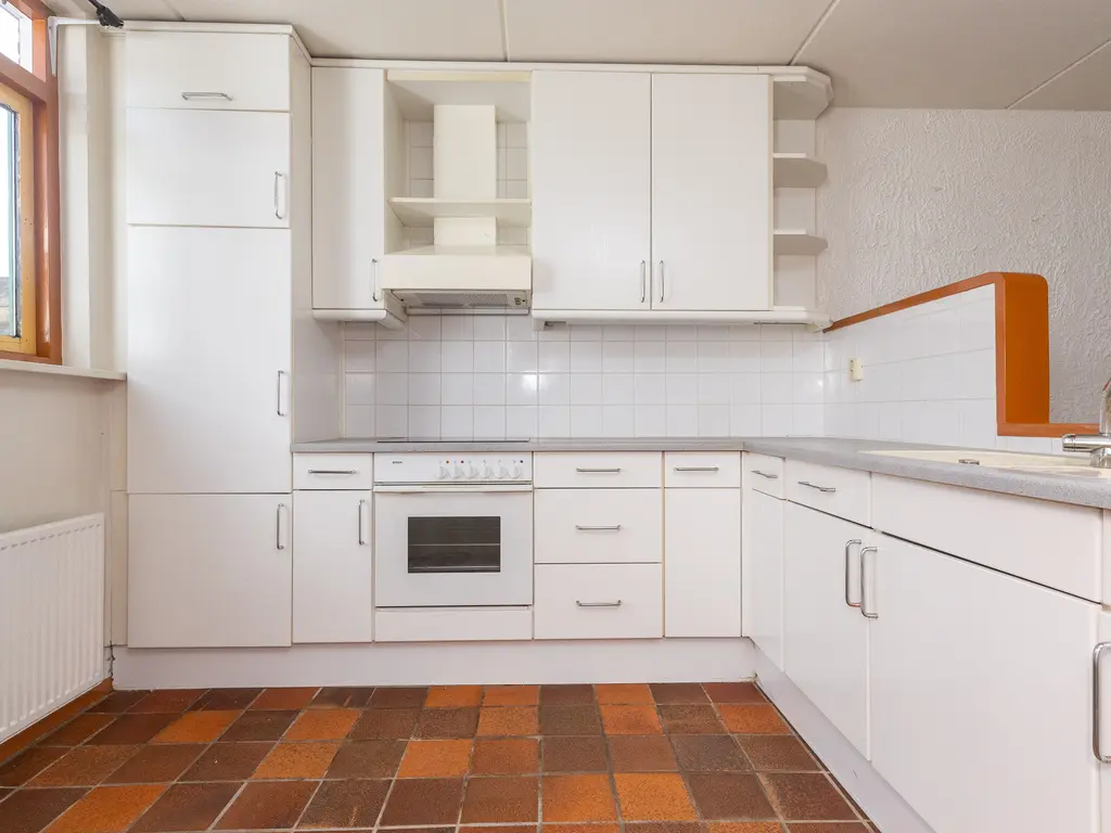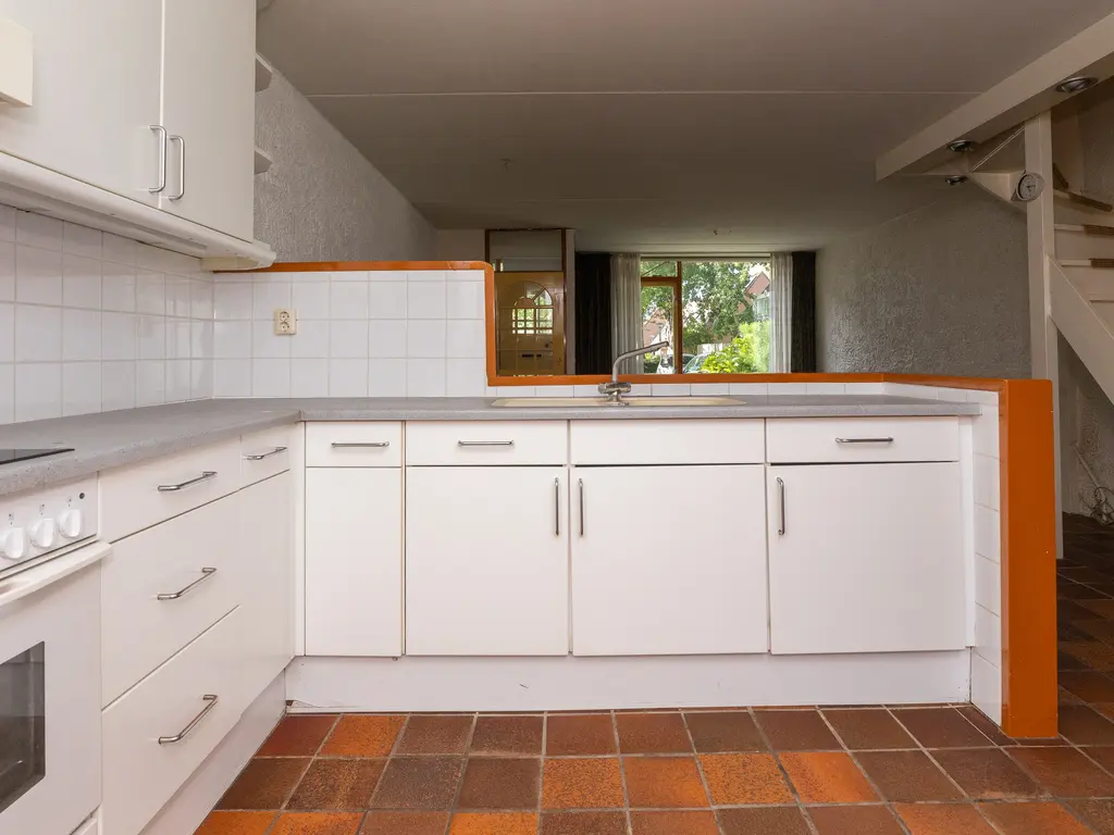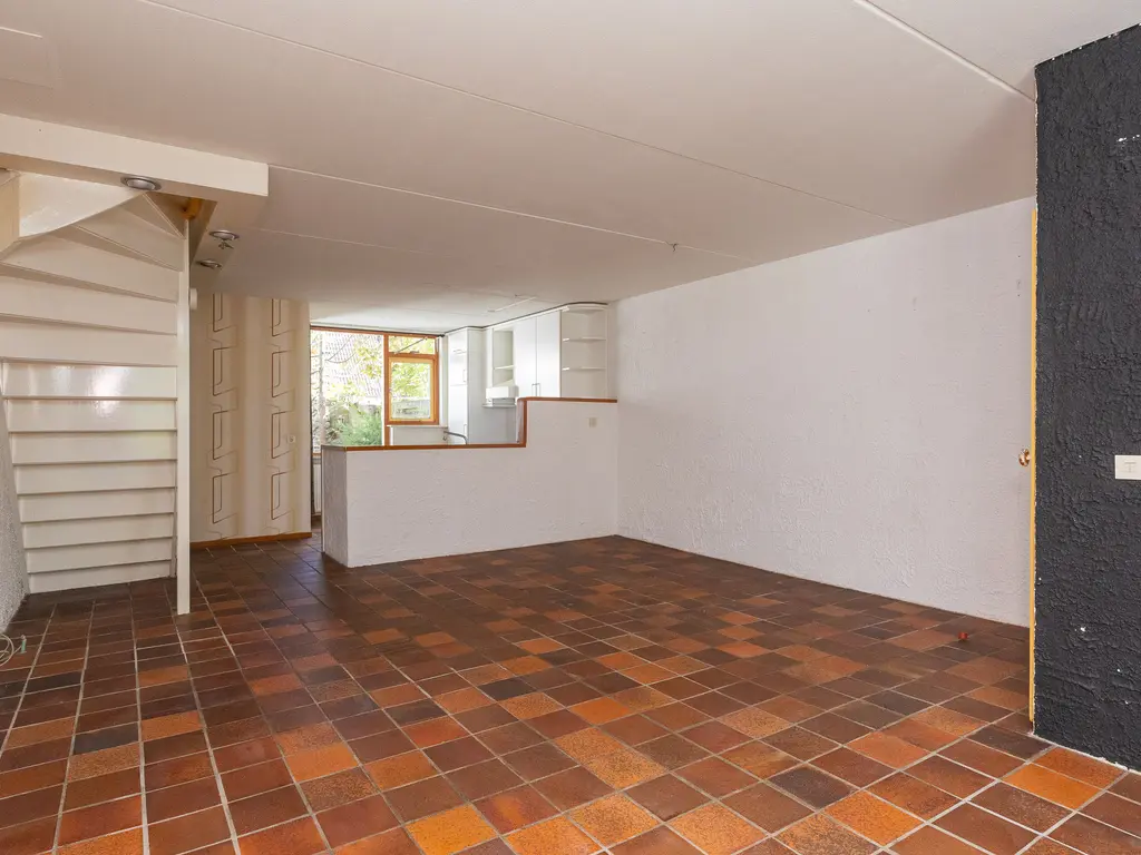 Via de hal bereik je de royale living met open keuken. Dankzij de grote raampartijen geniet je hier van veel lichtinval en een ruimtelijk gevoel. Aangrenzend aan de woning bevindt zich een ruime bijkeuken met toegang tot de tuin. In de tuin is ook nog een opberg ruimte gecreëerd, de tuin is tevens via een eigen poort aan de achterzijde bereikbaar