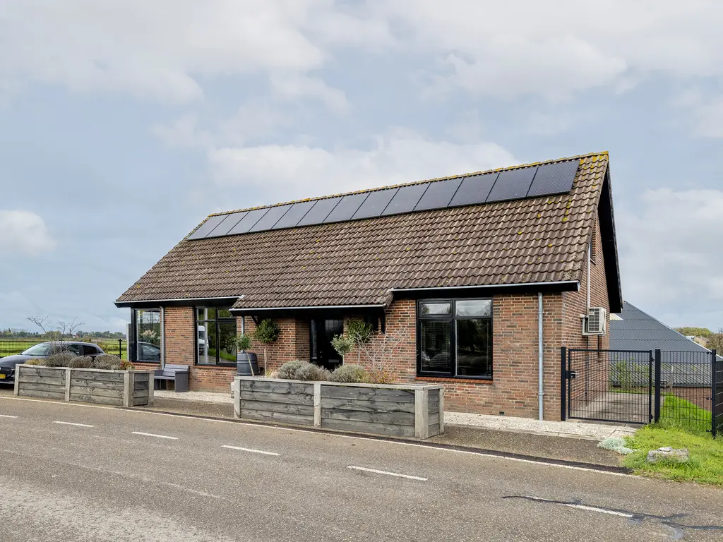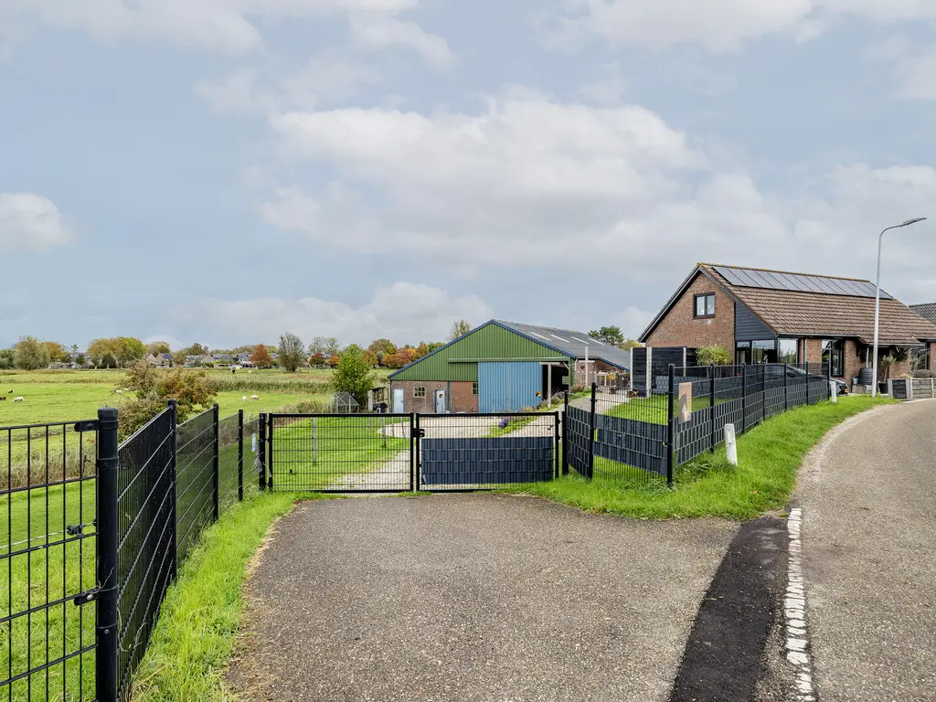 De brede oprit vanaf de dijk biedt plaats aan meerdere auto's. Rondom de loods is volop ruimte voor een moestuin, boomgaard, speelweide of tuin. Dankzij het vrije uitzicht over de polder en de rust van het omliggende landschap is dit een plek waar buitenleven echt tot zijn recht komt.