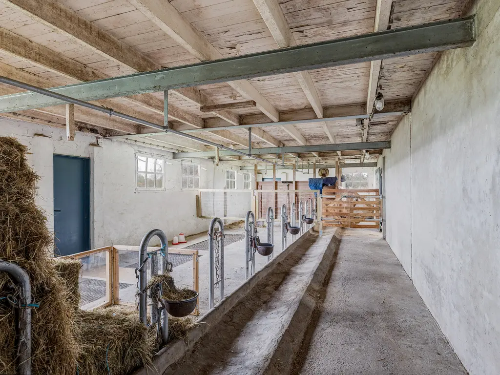 De woning is gelegen op een perceel van maar liefst 2.182 m² met een uniek vrij uitzicht over de polder. Aan de achterzijde bevindt zich de voormalige koeienstal met authentieke details, thans in gebruik als paardenstal en opslagruimte.