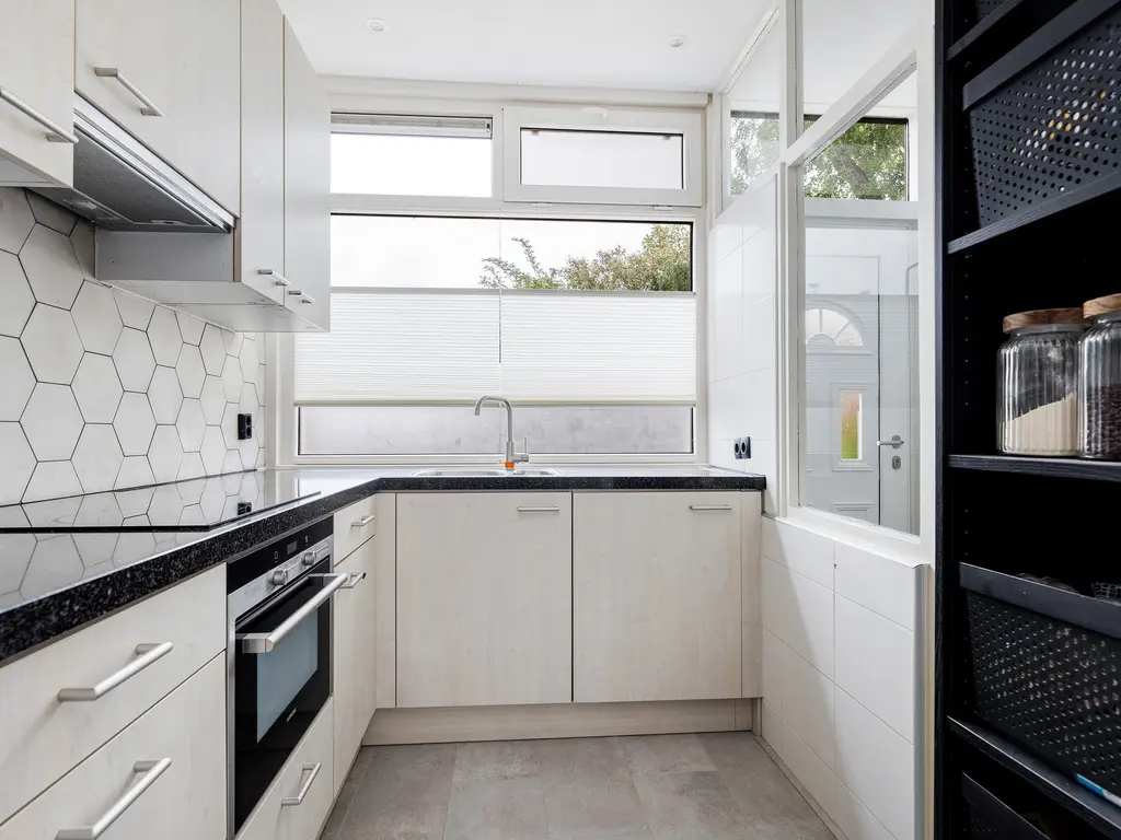 De keuken heeft een granietenblad en is voorzien van diverse inbouwapparatuur. De tuin ligt op het zuiden, dus de hele dag zon in de tuin.