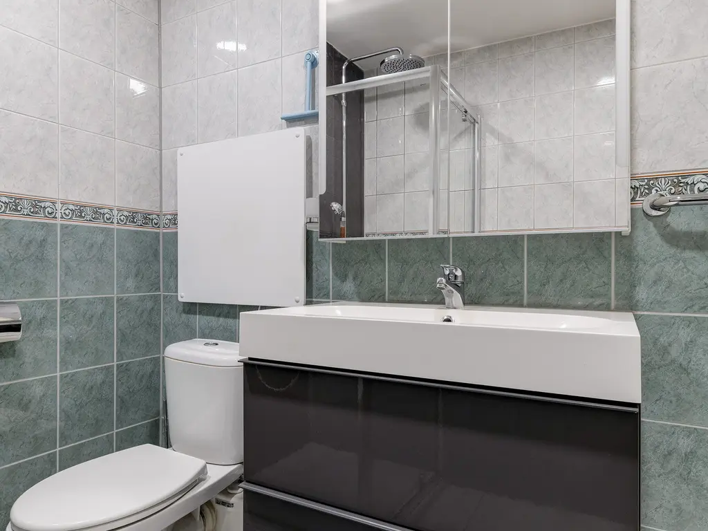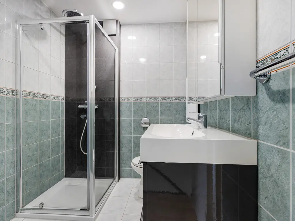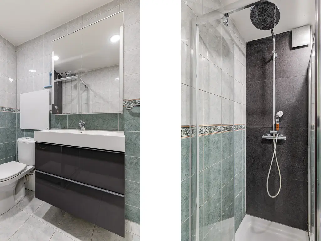 Op de eerst verdieping bevinden zich twee slaapkamers en de badkamer. Er is ook een wasruimte aanwezig, deze is toegankelijk via de hoofdslaapkamer. De badkamer is voorzien van een toilet, douche en wastafel.