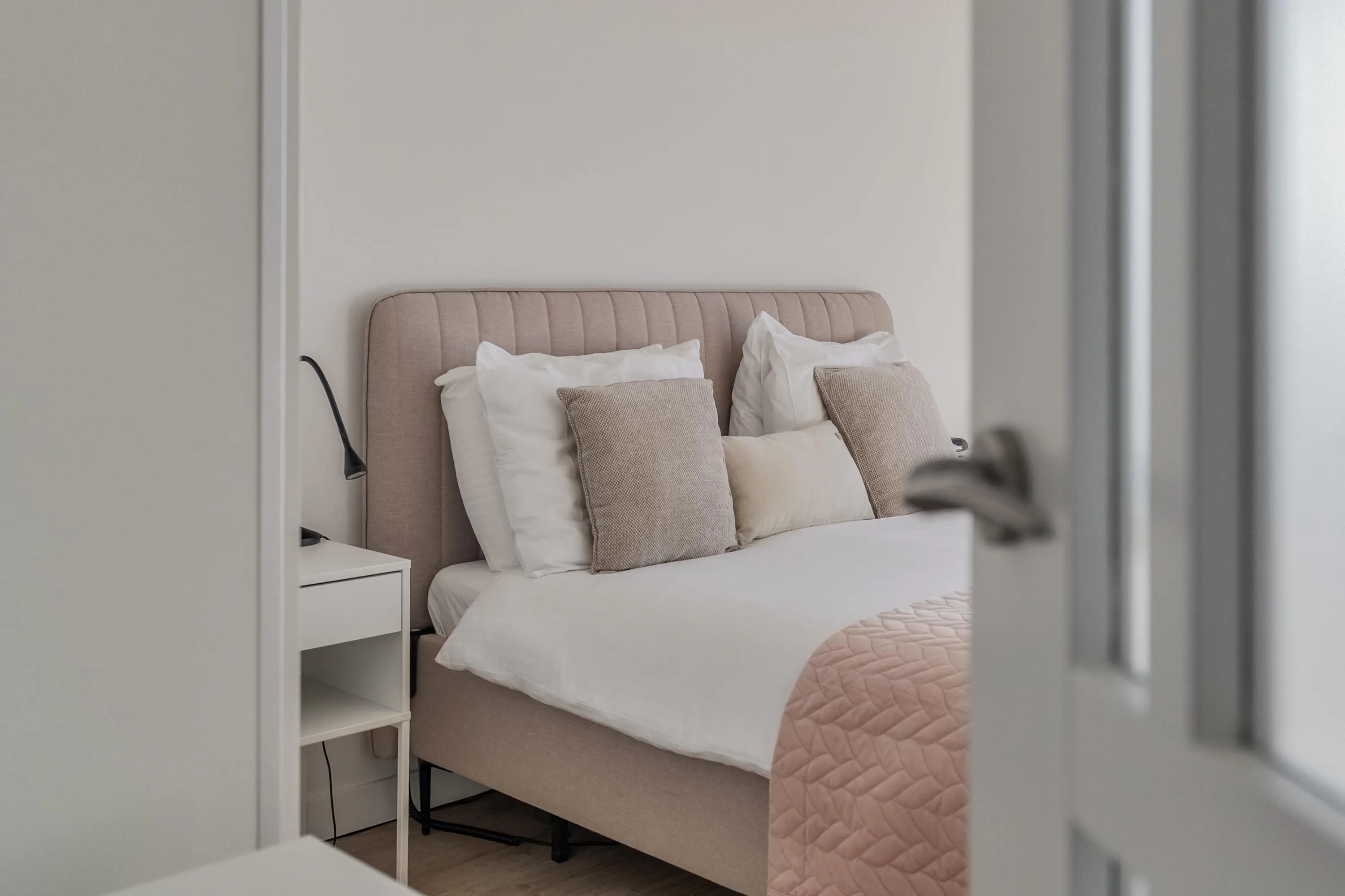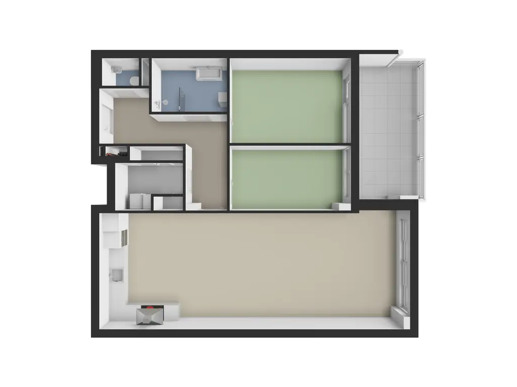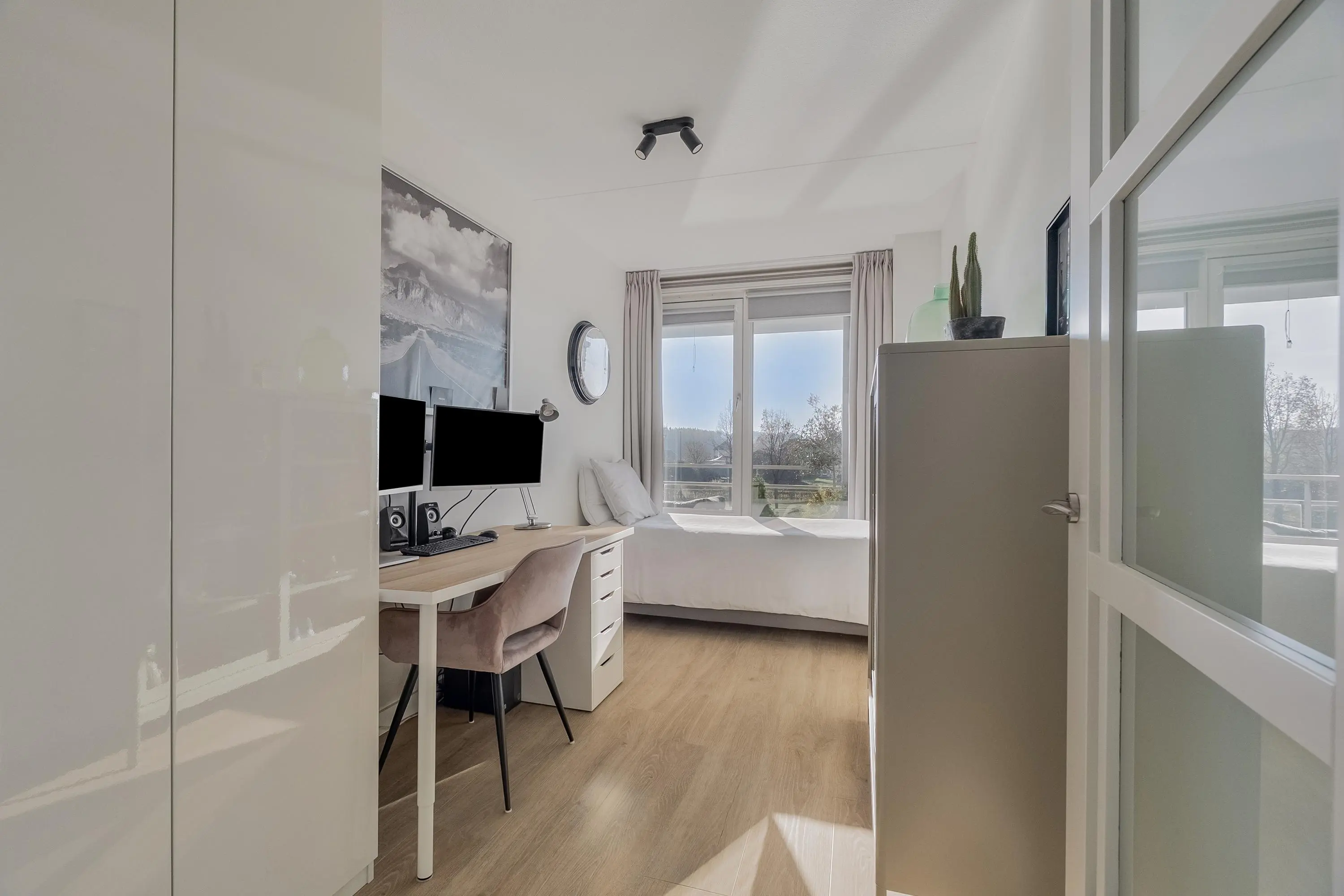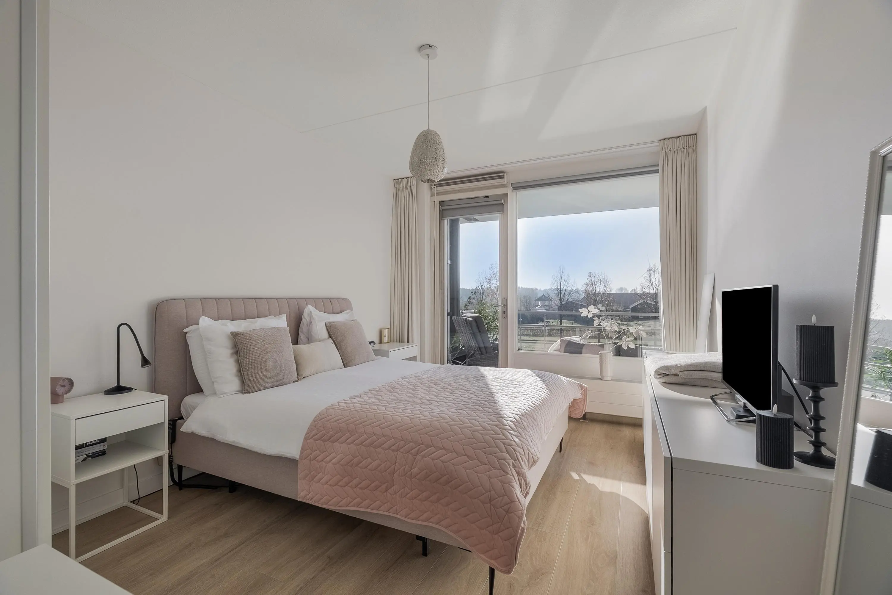 De woning beschikt over twee ruime slaapkamers, waarvan de grootste direct toegang biedt tot het royale balkon van 15 m² op het zuiden. Dit terras is een heerlijke buitenruimte met volop privacy, waar je van ’s ochtends tot ’s avonds kunt genieten van zon, uitzicht en rust.