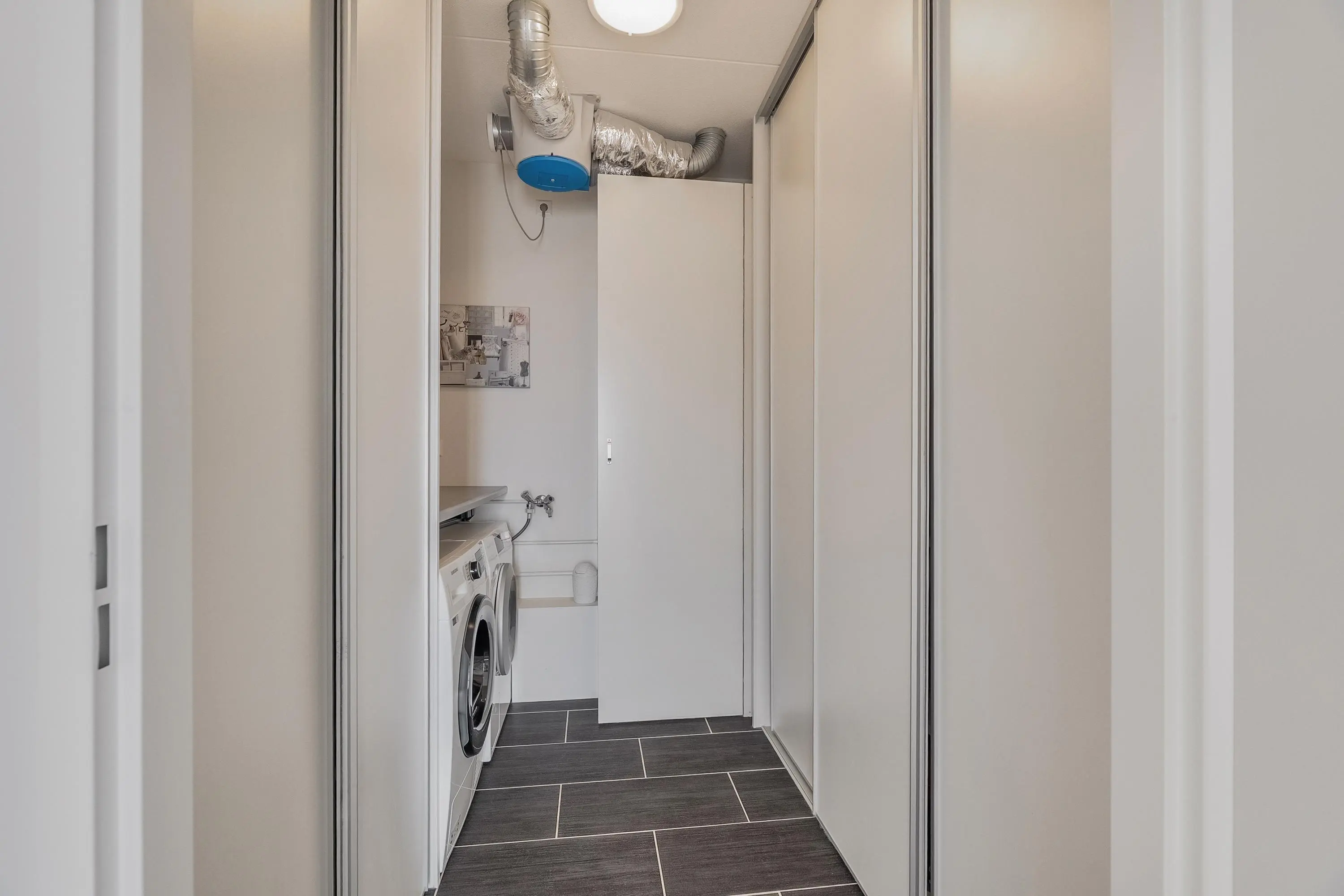 Verder is er een grote inpandige berging met aansluiting voor de wasmachine en CV-installatie, evenals een praktische schuifkastenwand voor extra opbergruimte.