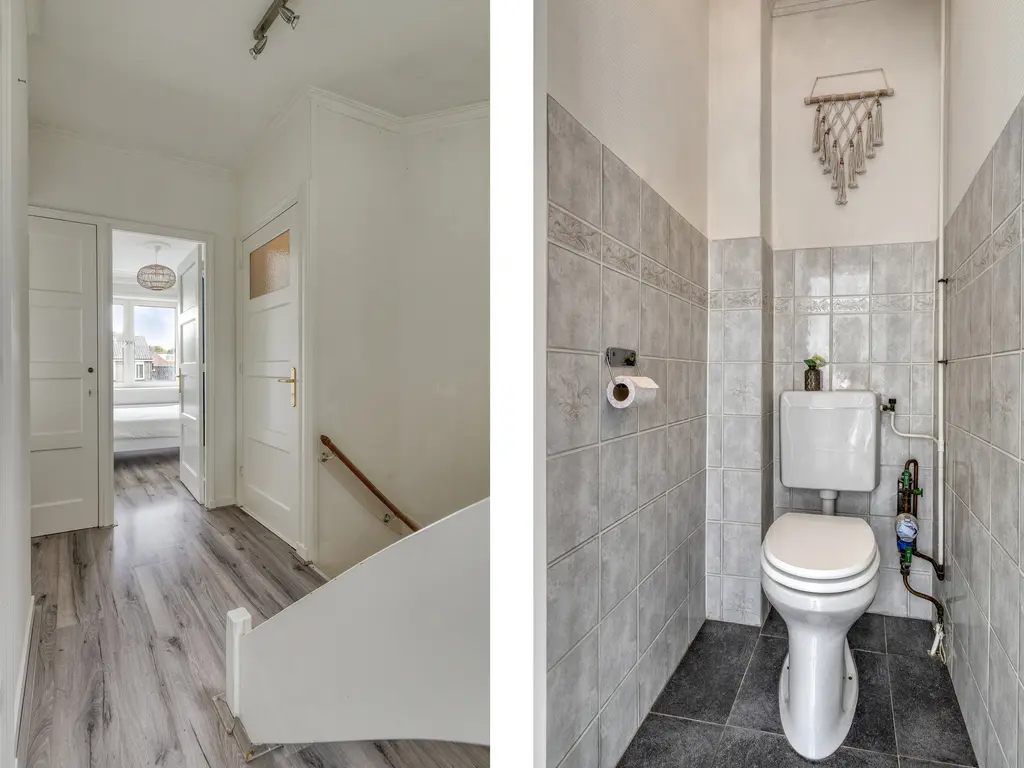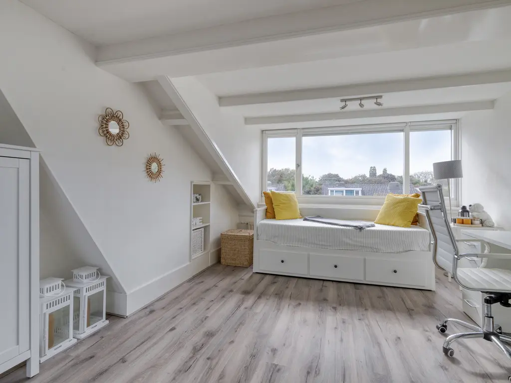 De trapopgang loopt door naar de tweede verdieping. Hier bevindt zich een ruime overloop met de opstelplaats voor de wasmachine en droger en veel praktische kastruimte. Vanuit de overloop is de tweede slaapkamer bereikbaar. Deze kamer, met een oppervlakte van veertien vierkante meter, is voorzien van een dakkapel waardoor de ruimte licht en ruimtelijk aanvoelt. De gehele bovenverdieping is in 2024 opnieuw geisoleerd.