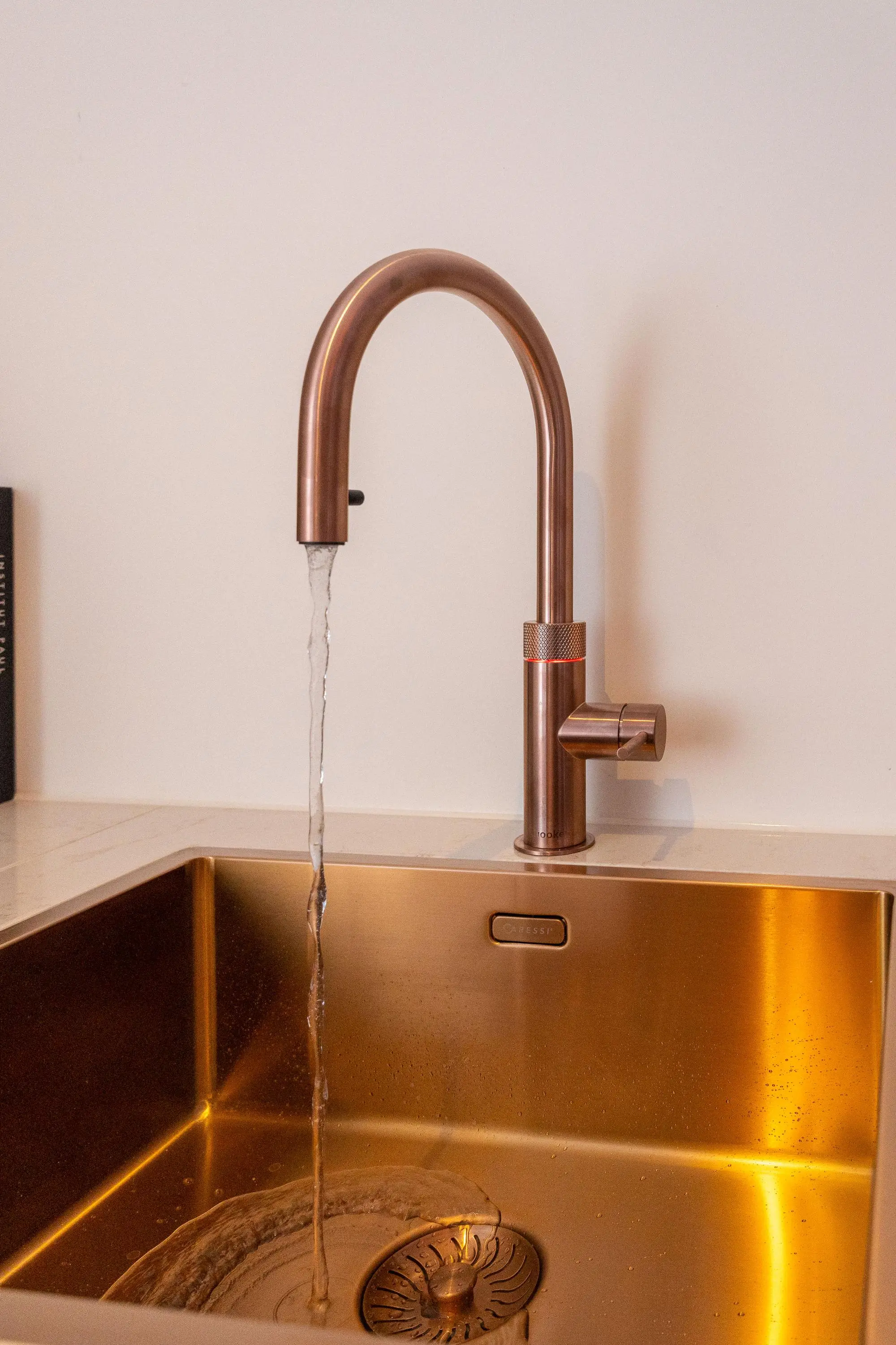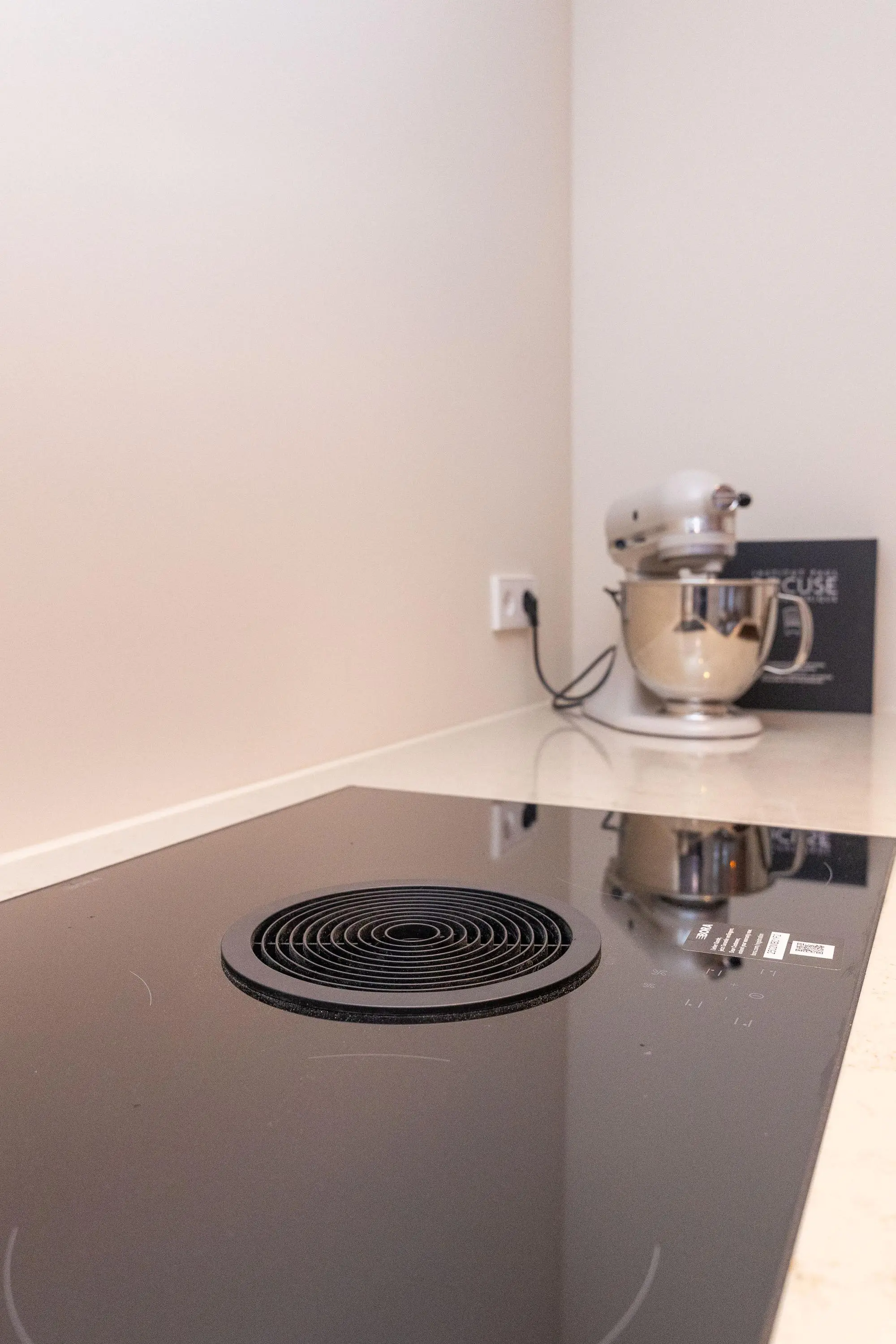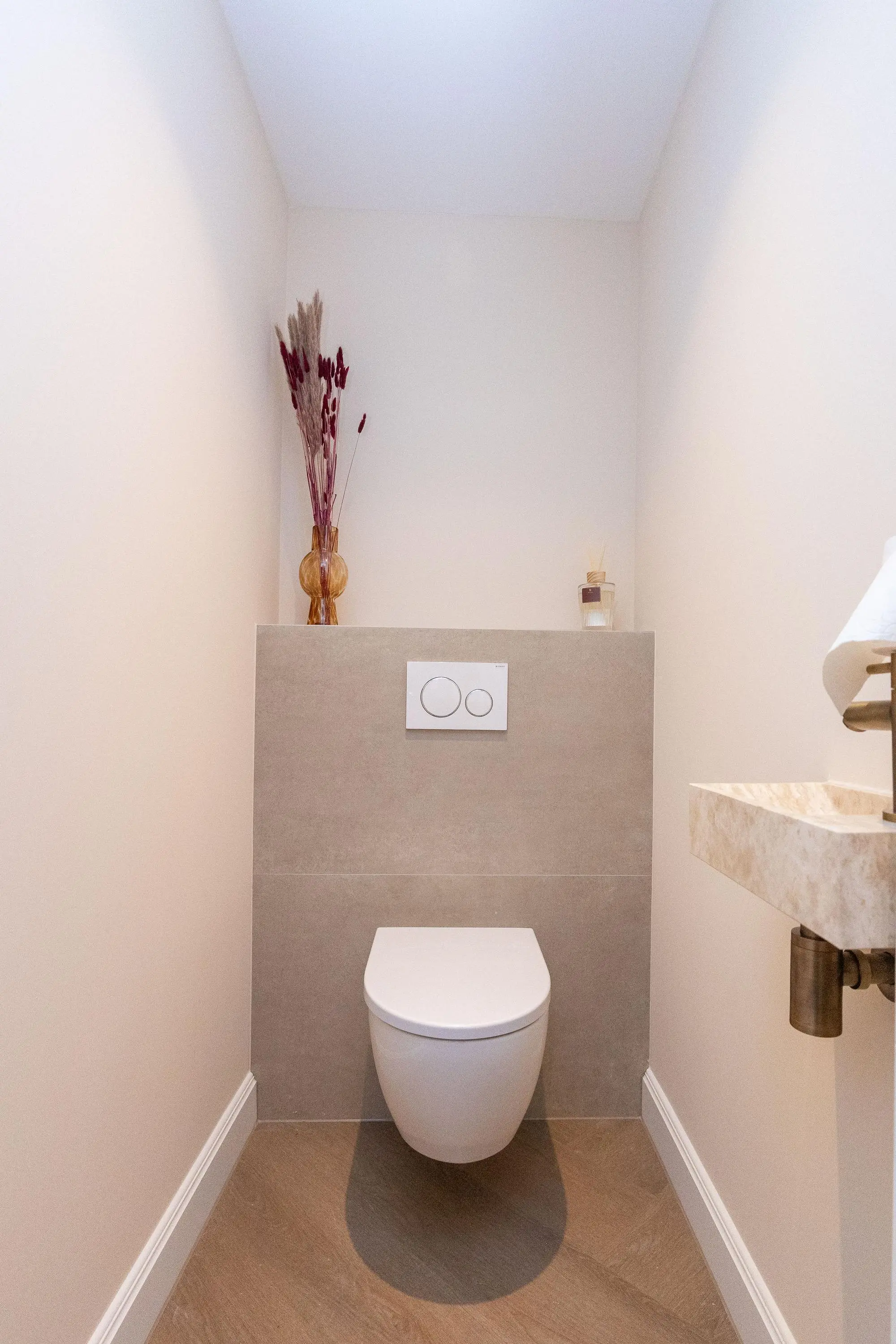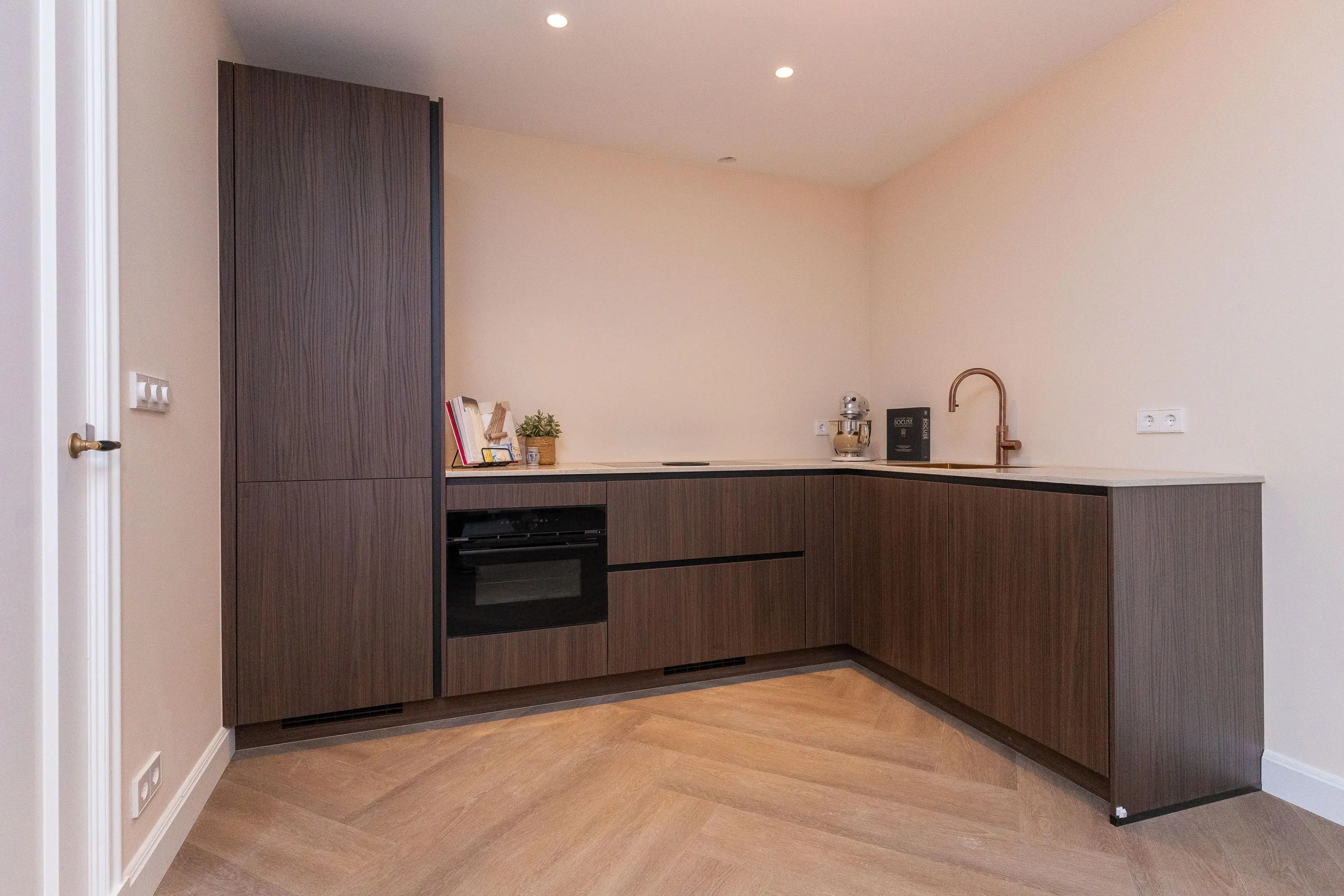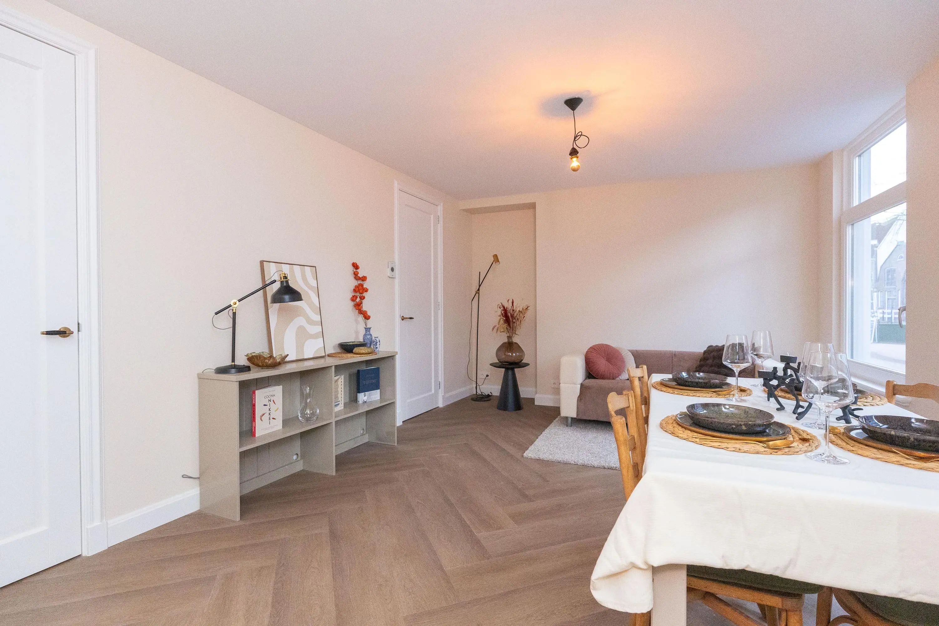 Entree, hal, nieuwe meterkast, open luxe keuken in L-vormige opstelling met een koel-/vriescombinatie, Bora inductie kookplaat, combi-oven, Quooker en een vaatwasser, lichte woonkamer met grote raampartijen, bergkast met opstelling CV. ketel (Nefit, 2025) en de wasmachine aansluiting, tussenhal met de trapopgang naar de 1e verdieping en luxe toilet met hangcloset en een fonteintje. De begane grond is voorzien van een visgraad pvc vloer en een vloerverwarming.