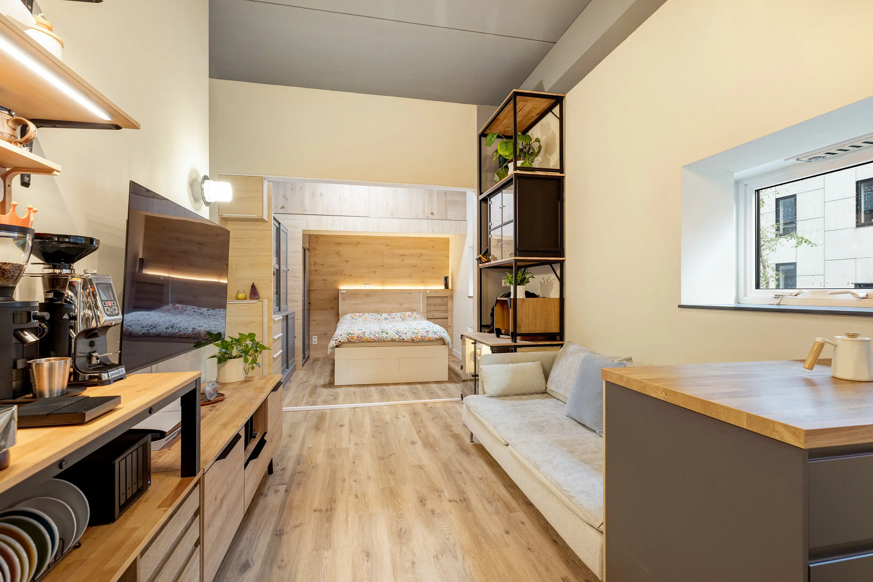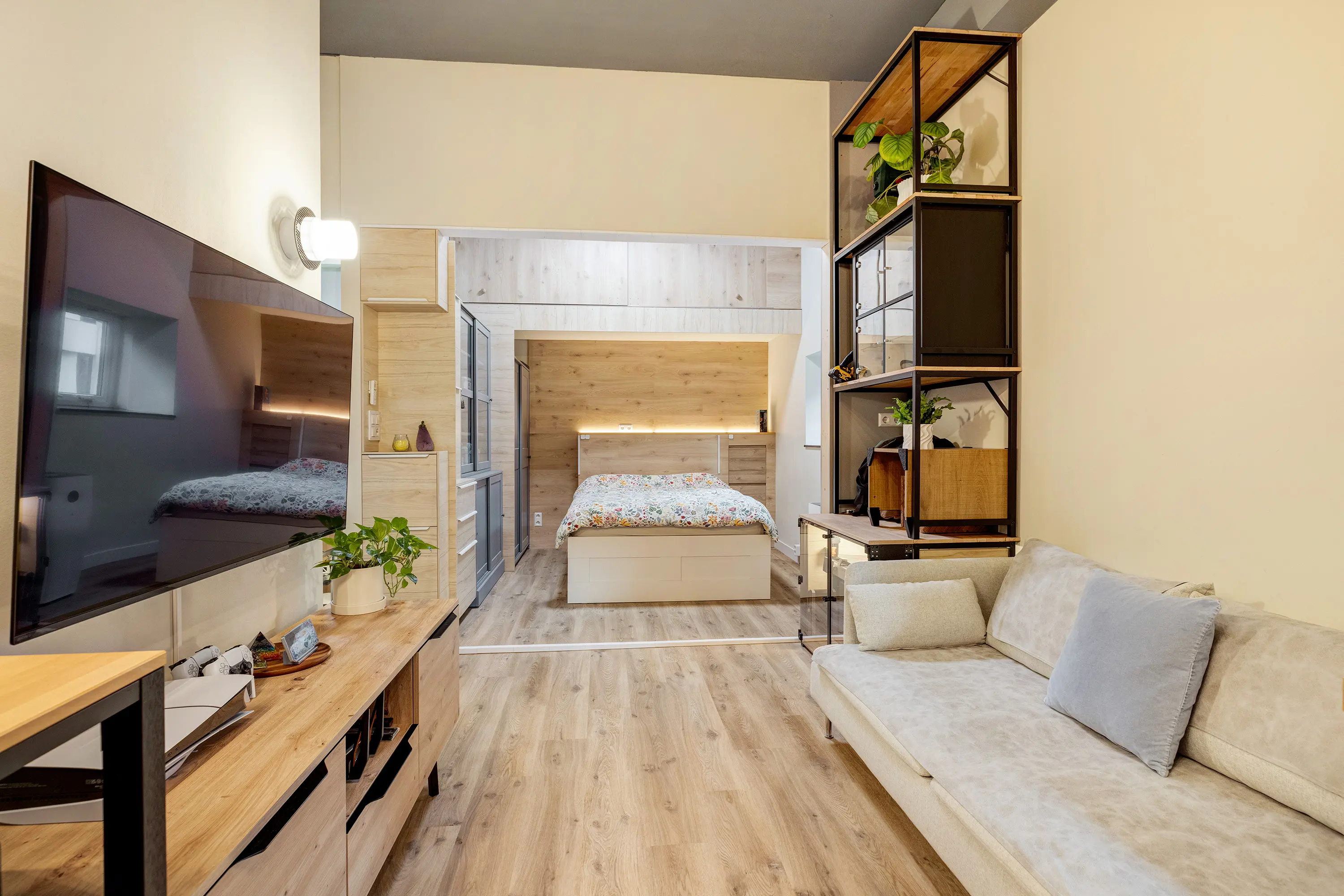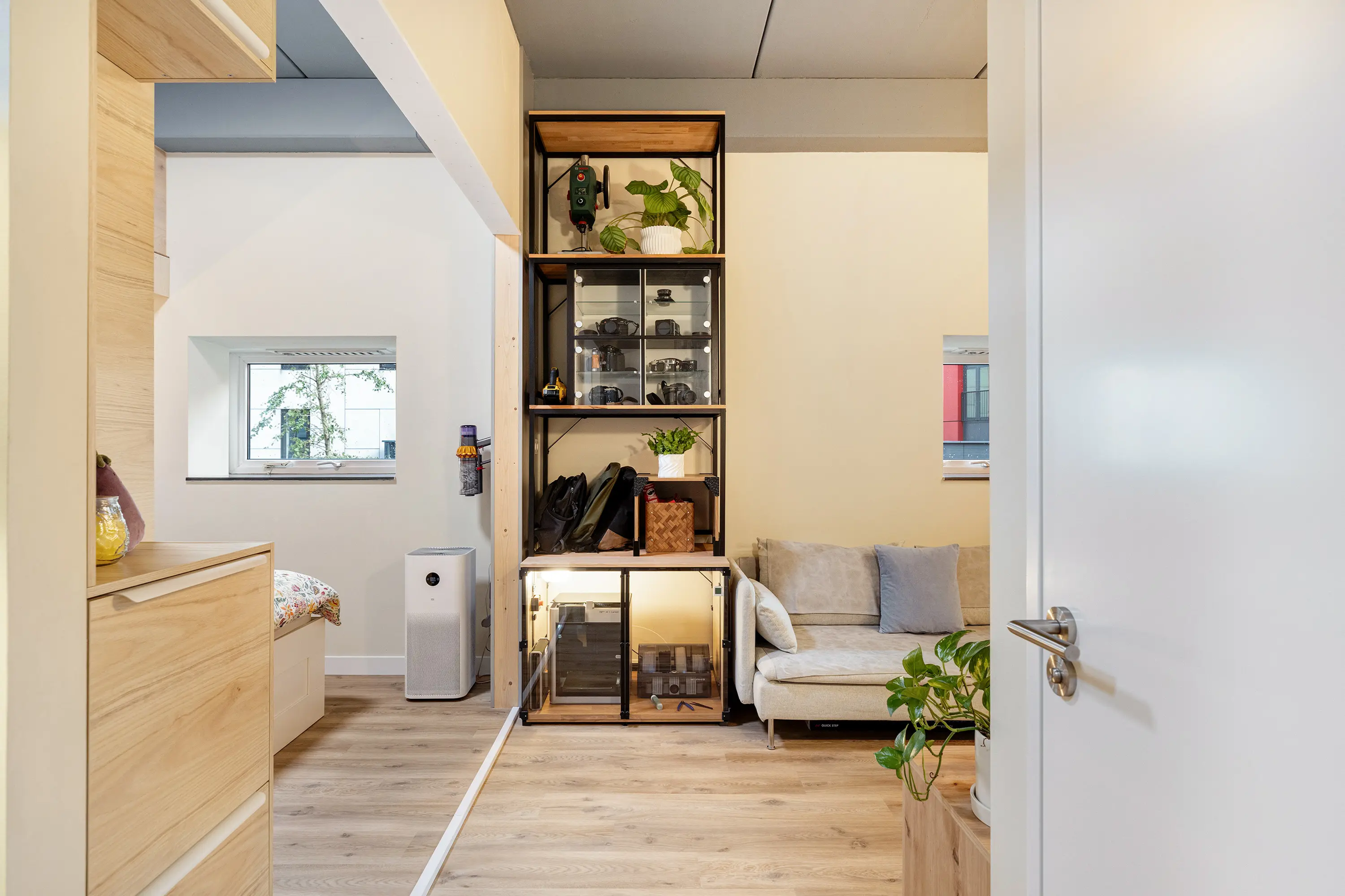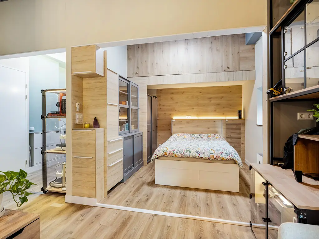 Stel je voor, wonen midden in het práchtige Wijnhavengebied, in het mooie stadscentrum van Rotterdam, in je eigen 2- kamer woning, maar heel efficiënt ingedeeld. Bovendien kun je het slaapgedeelte van deze moderne 2- kamer woning eenvoudig afscheiden van het woongedeelte en zo een 3- kamer woning creëren.