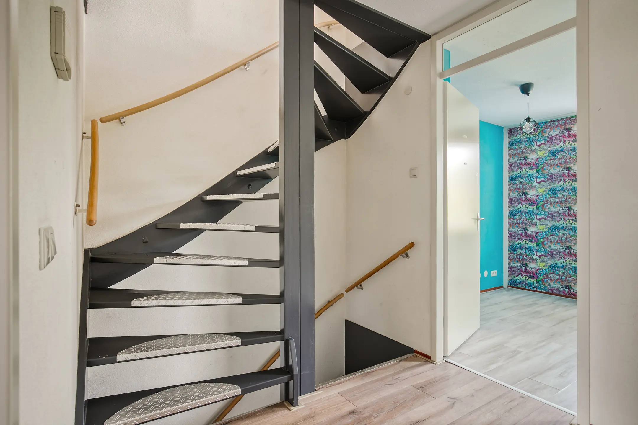 Ruime overloop met toegang tot alle vertrekken en trap naar de 2e verdieping.