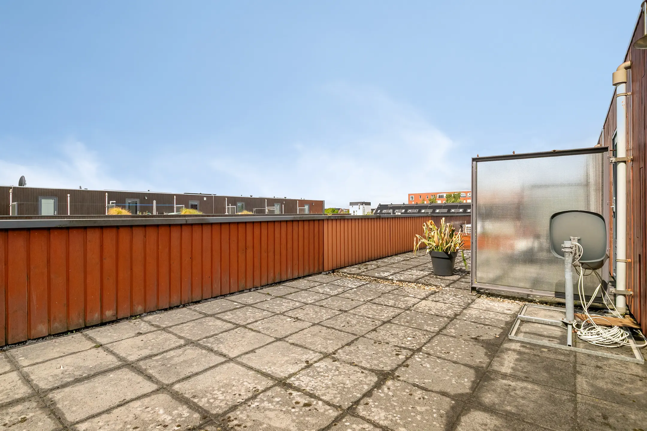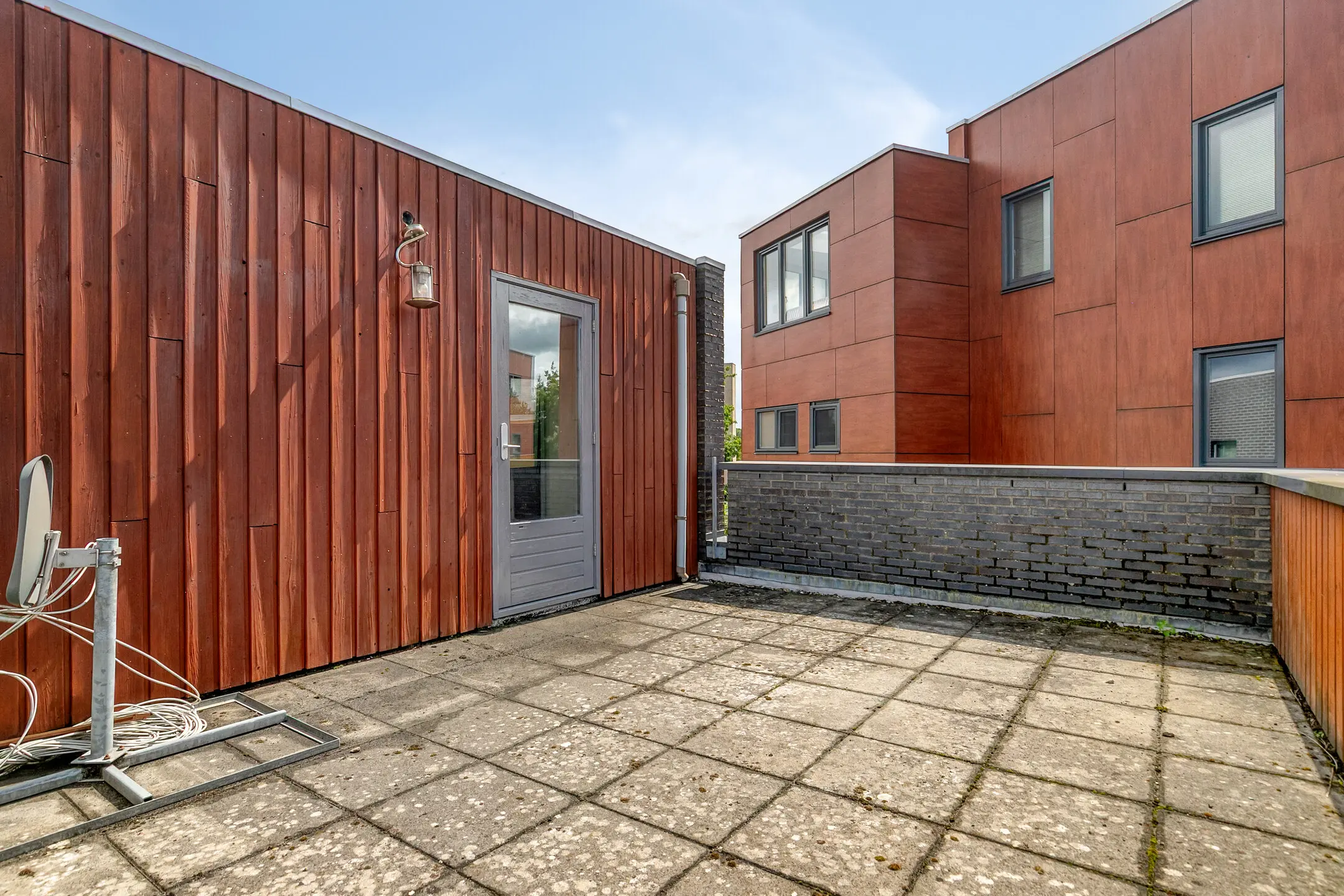De zolder biedt volop ruimte en kan eenvoudig worden ingedeeld met één of twee extra (slaap)kamers. Aan de achterzijde bevindt zich bovendien een sfeervol dakterras op het zonnige zuidwesten met vrij uitzicht.