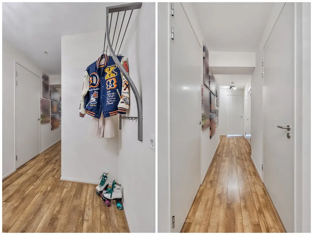 Entree, hal met meterkast en een vaste kat met de technische installatie. Fraai afgewerkte toiletruimte, voorzien van een hangend toilet en fonteintje. De toiletruimte is gedeeltelijk betegeld in een lichte kleurstelling.