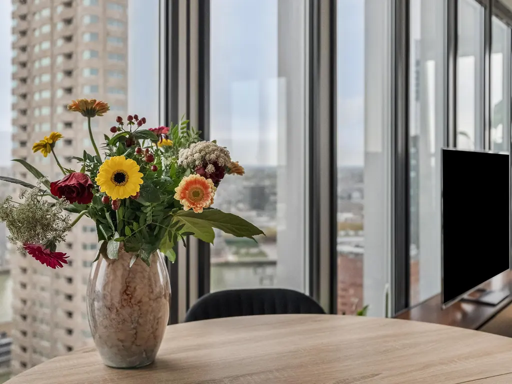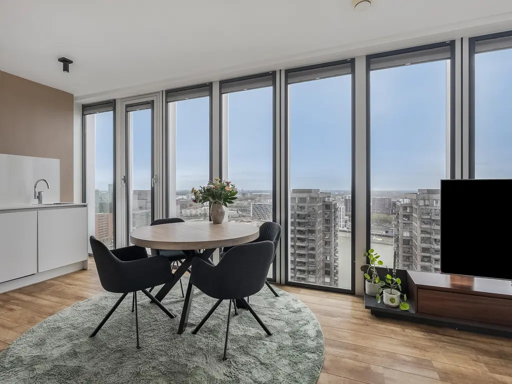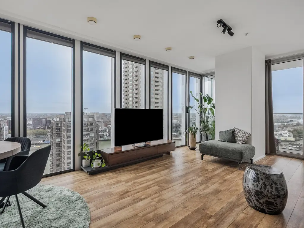 Exclusief 3-kamer hoekappartement met berging en de Maas aan je voeten en een spectaculair uitzicht over de skyline van Rotterdam. Wonen op de 22e verdieping betekent elke dag beginnen en eindigen met een adembenemend uitzicht vanuit de royale living. Grote raampartijen zorgen voor een overvloed aan natuurlijk licht en een ruimtelijk gevoel. De moderne open keuken is volledig uitgerust met hoogwaardige inbouwapparatuur en een elegant afwerkingsniveau. De slaapkamers bieden rust en privacy, terwijl de luxe badkamer is ingericht met exclusieve materialen en stijlvol design.