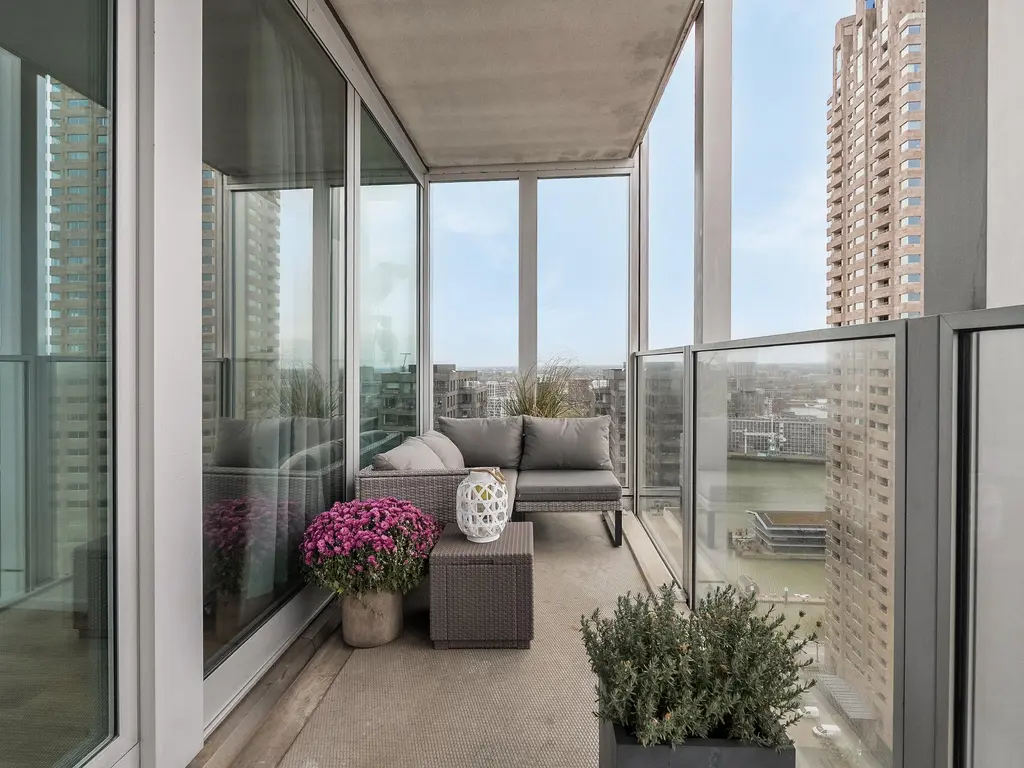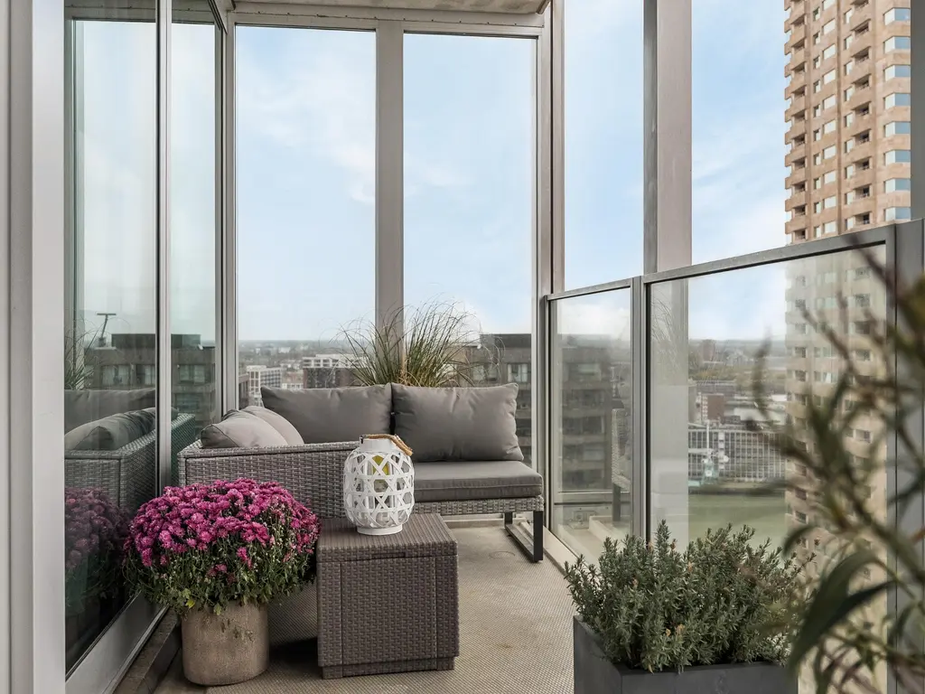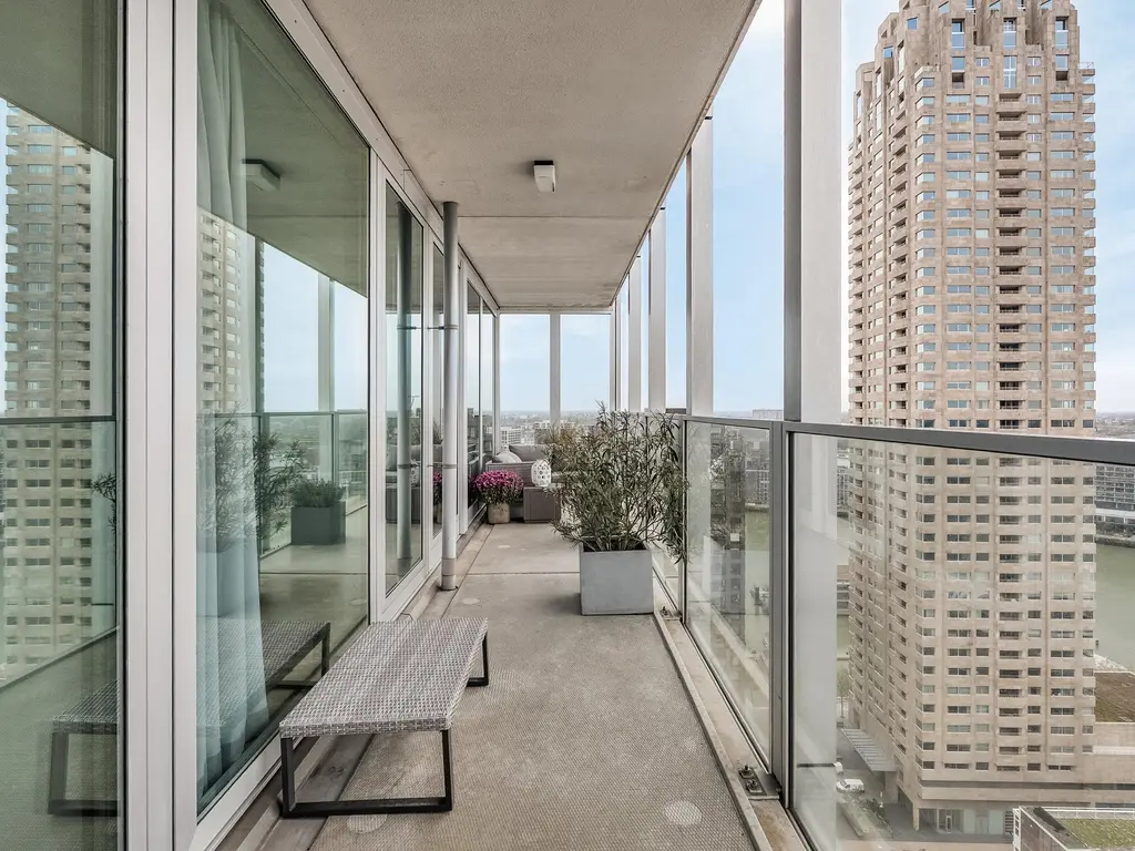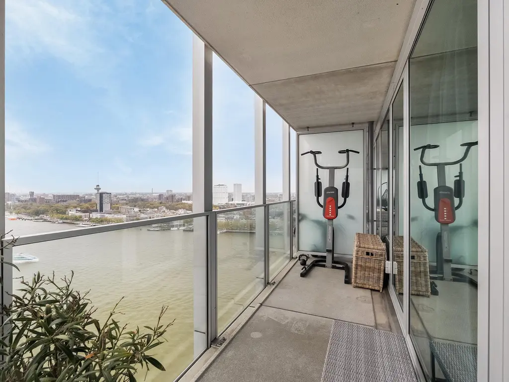 - Royaal balkon met adembenemend uitzicht op de skyline van Rotterdam;