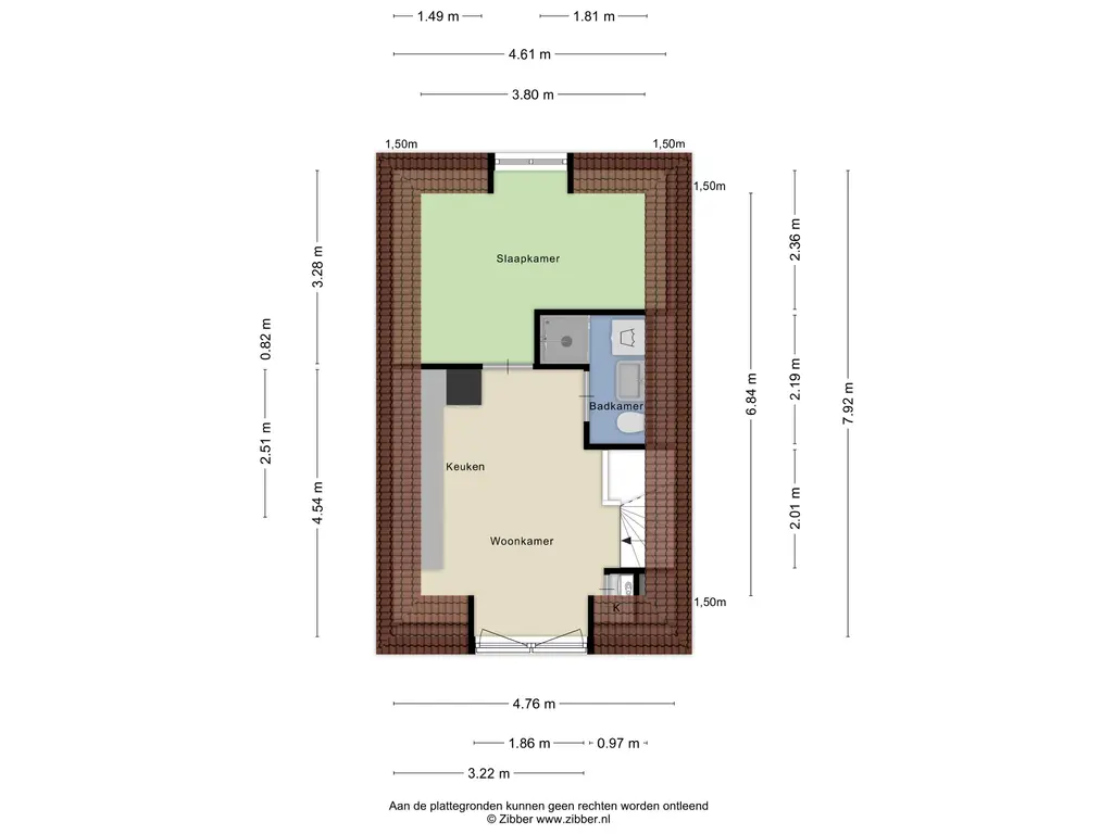 Vanuit de woonkamer bereik je de slaapkamer en de badkamer. In de slaapkamer staat een comfortabel tweepersoonsbed, zijn twee ruime kasten aanwezig en zorgen verduisterende rolgordijnen voor een prettige nachtrust. De badkamer beschikt over een douche, wastafelmeubel, toilet en een praktische was-/droogcombinatie.