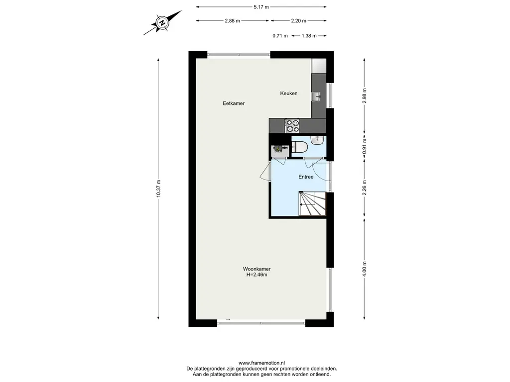 Entree aan de zijkant van de woning met hal, meterkast en trapopgang naar de eerste verdieping. De toiletruimte is uitgevoerd met een duoblok toilet en fonteintje en gedeeltelijk betegeld in een lichte kleur.