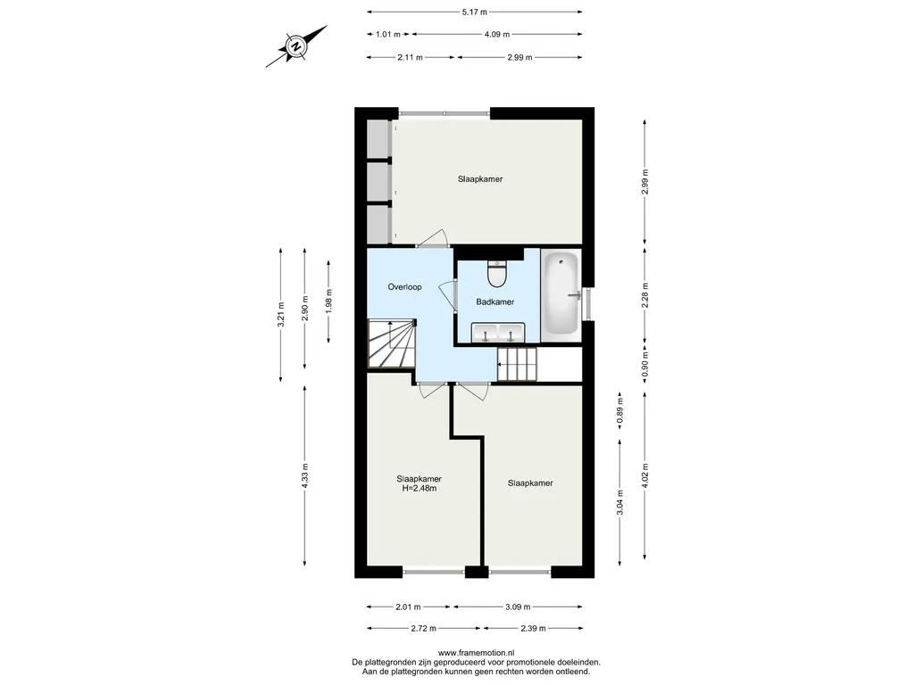 Overloop met toegang tot drie slaapkamers en de badkamer.